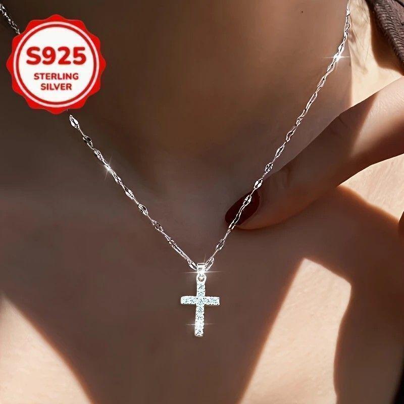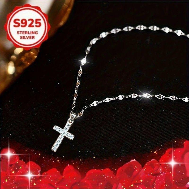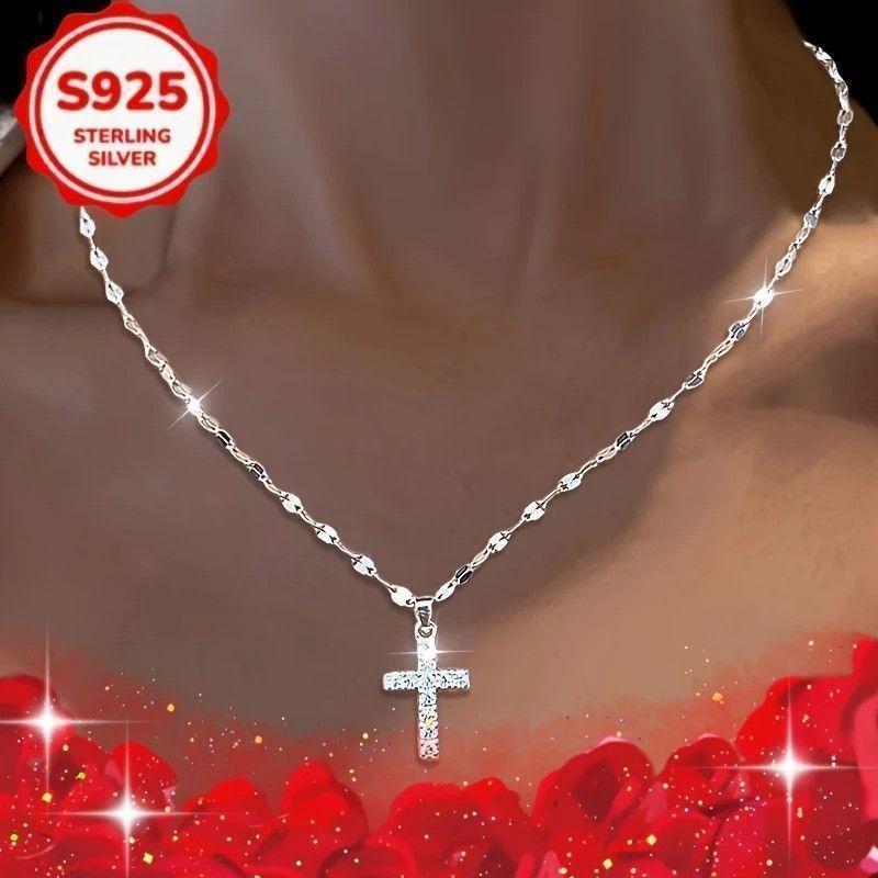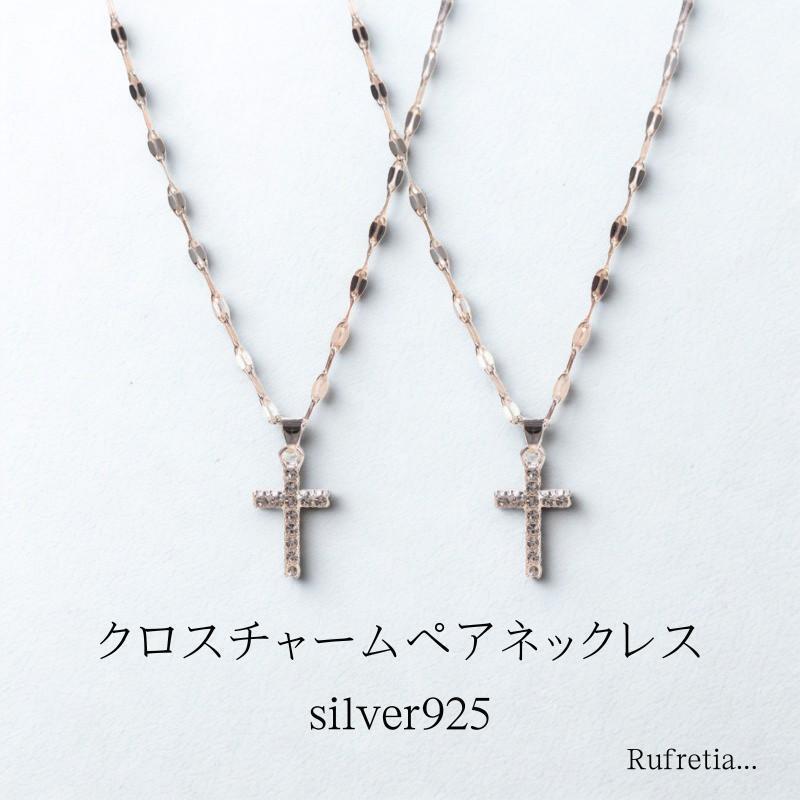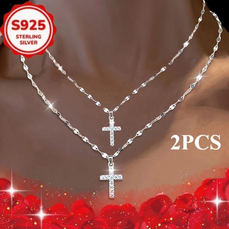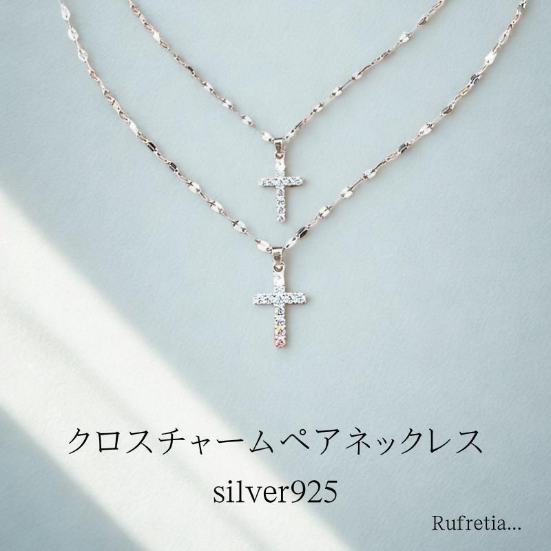 ペア 925 シルバー ネックレス 2点セット クロス ジルコニア ギフト 收藏