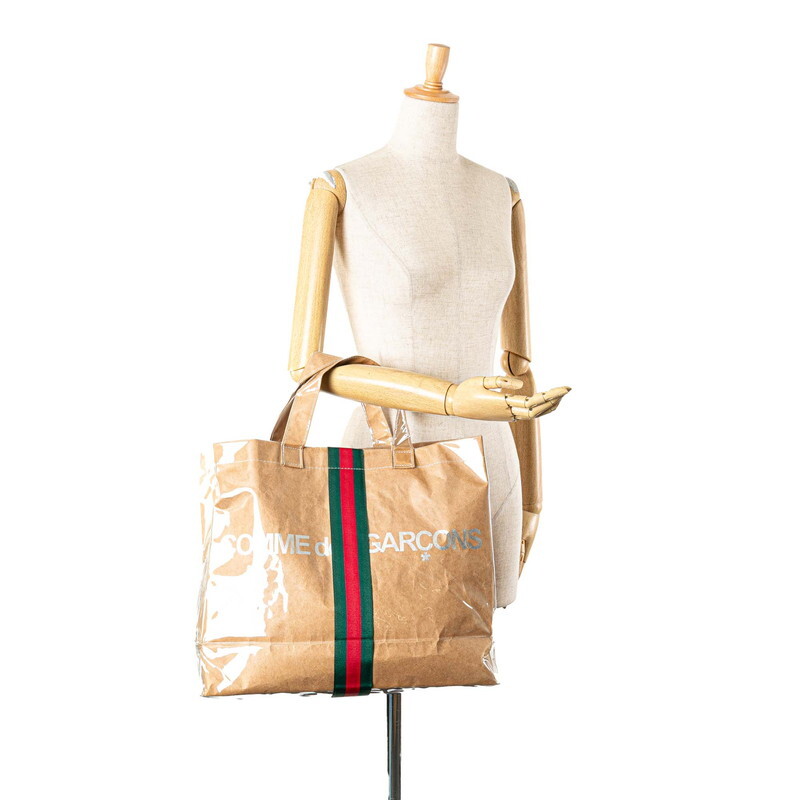 グッチ × コムデギャルソン シェリーライン トートバッグ ハンドバッグ GO-K201 ベージュ ビニール クラフト レディース GUCCI 【中古】 收藏