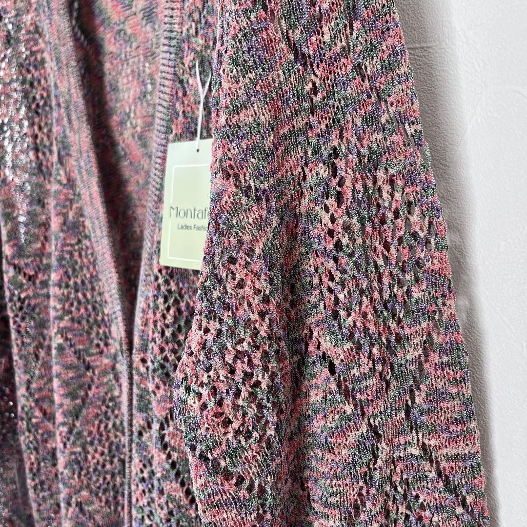 タグ付き未使用 レース編みカーディガン 模様編み 7分袖 レトロ ガーリー L Vネック クロシェ編み かぎ針編み 羽織り 大人かわいい 收藏