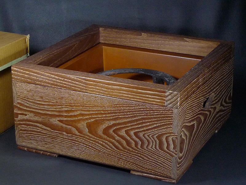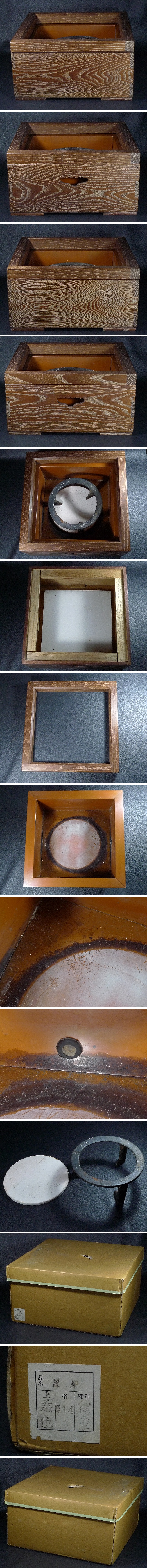 1414N06*07B▲茶道具 桑色 仙徳上入子 置炉セット 炉縁・炉壇・五徳・箱付き 茶器 置き炉 囲炉裏 火鉢 煎茶道具 收藏