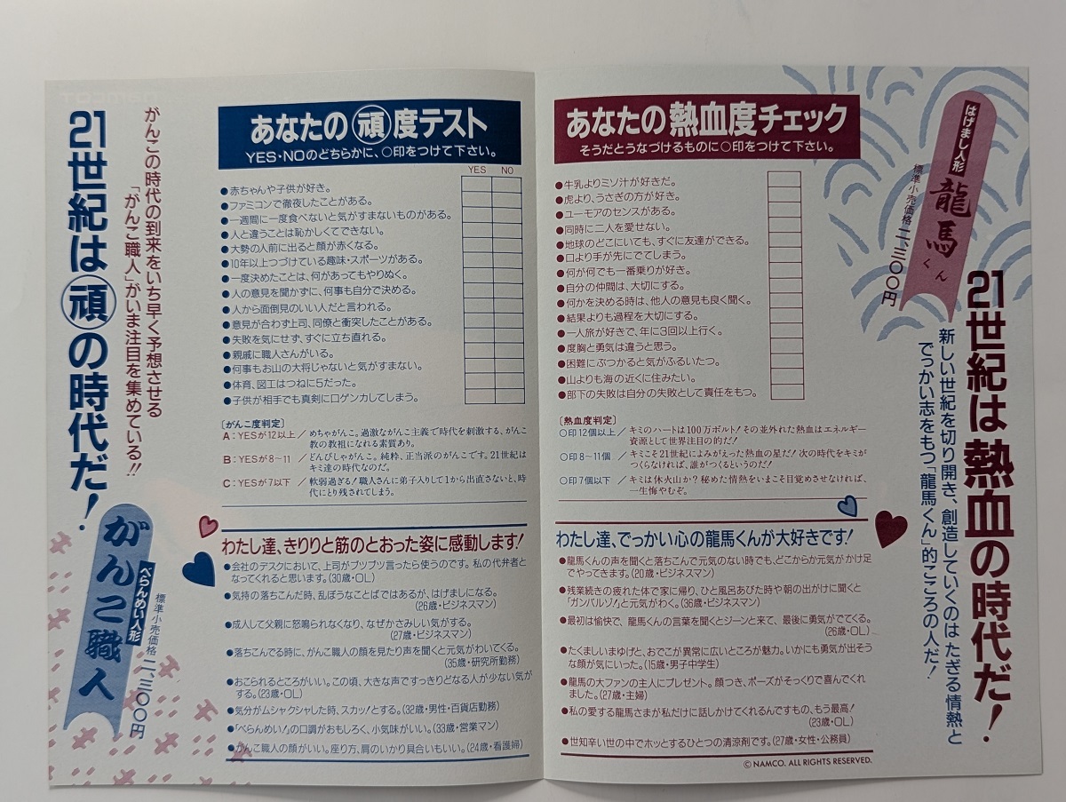 はげまし人形 龍馬くん べらんめい人形 がんこ職人 のチラシ / namcot namco ナムコット ナムコ 收藏
