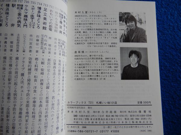 ★2 札幌いい味101店 木村久里,逢坂慎一 / カラーブックス721 昭和61年,初版,ビニールカバー付 新感覚で選りすぐった味の店 收藏