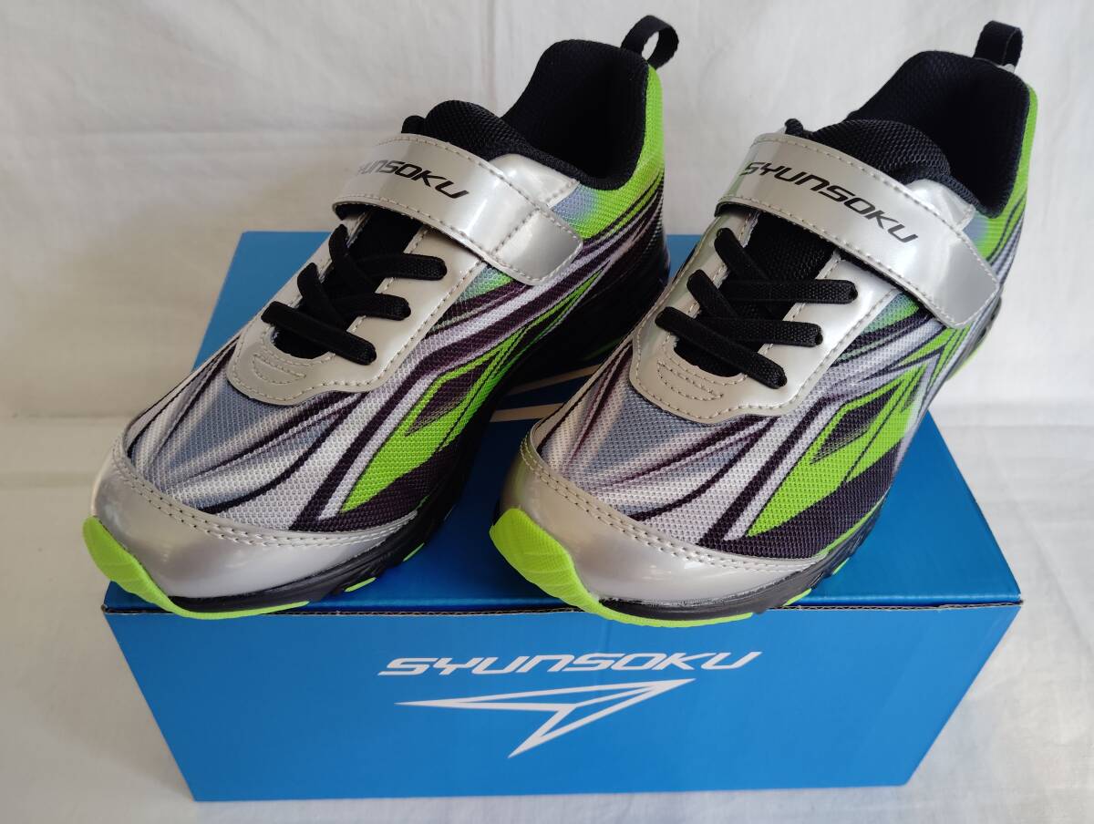 子供スニーカー 瞬足 214 23.0cm 2E シルバー 男の子 シュンソク スニーカー 軽量ひもマジック 黒系 通学、校内ばきに スポーツに 收藏