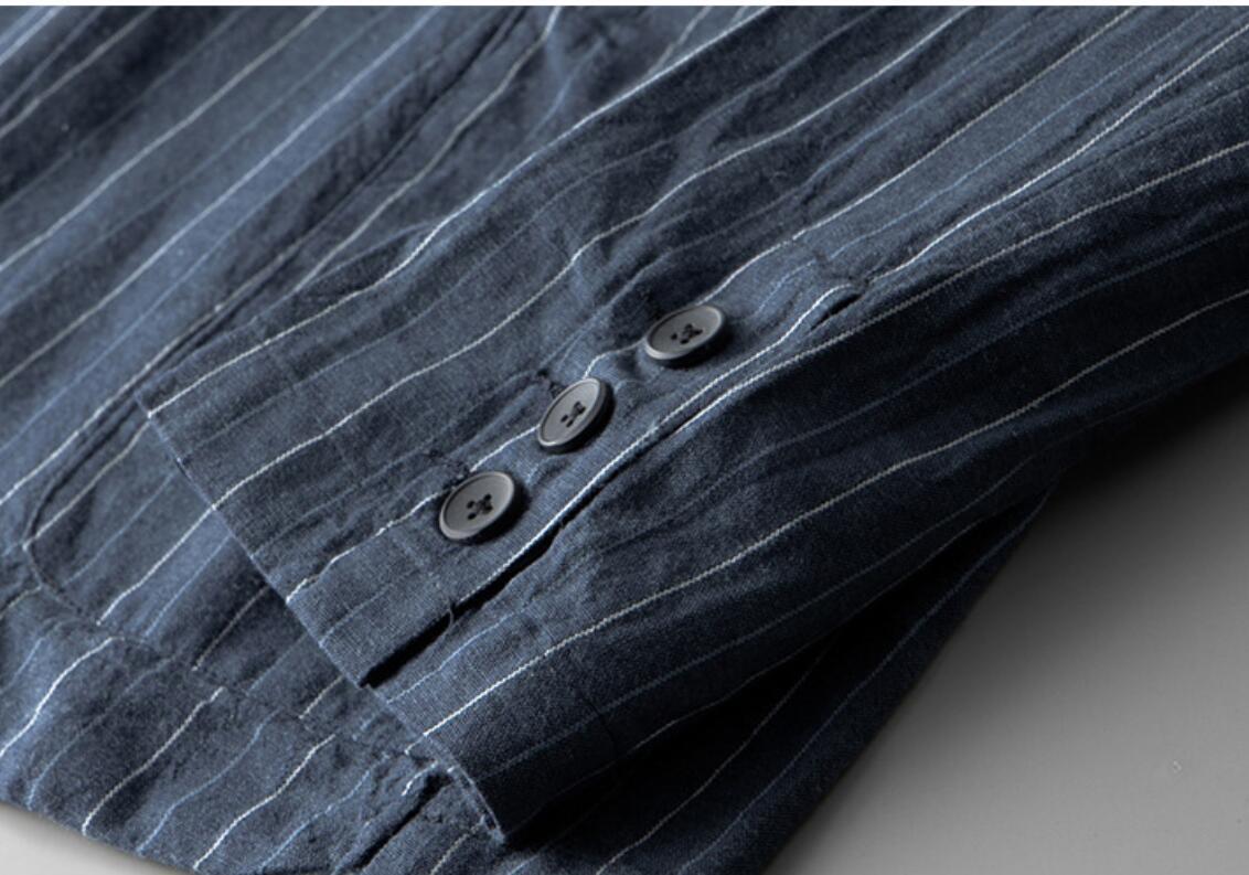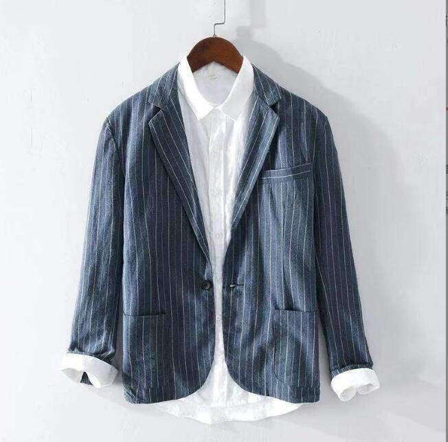 大人気テーラードジャケット メンズ リネンジャケット ブレザー ストライプ柄 サマージャケット 春秋物 アウター ブルー M 收藏