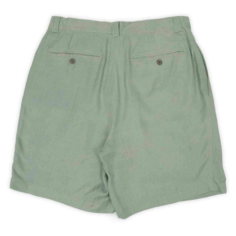 トミーバハマ Tommy Bahama 00s Y2K 1タック シルクショーツ ヘリンボーン HBT ショートパンツ USA 古着 (-6195) グリーン W32 收藏