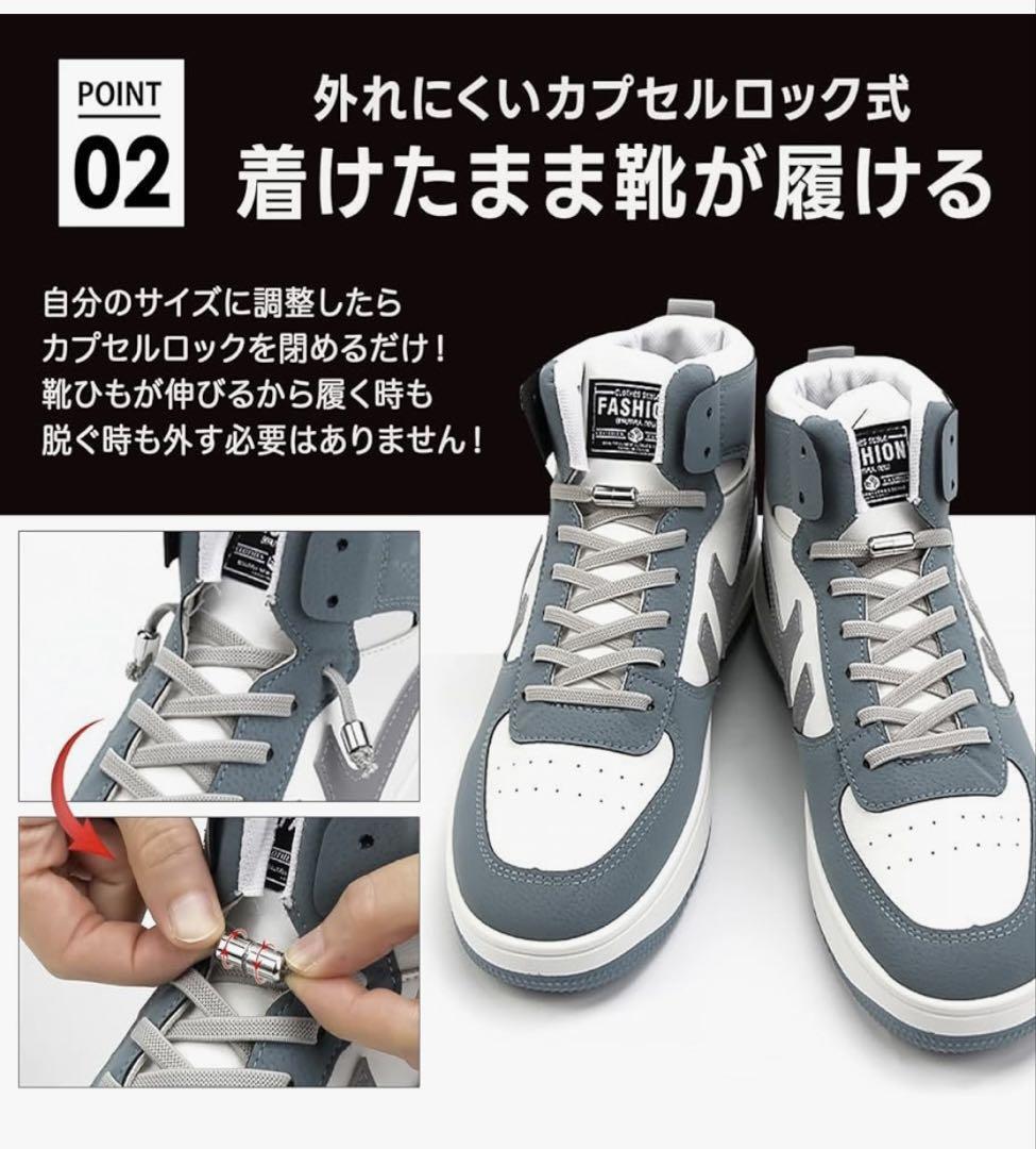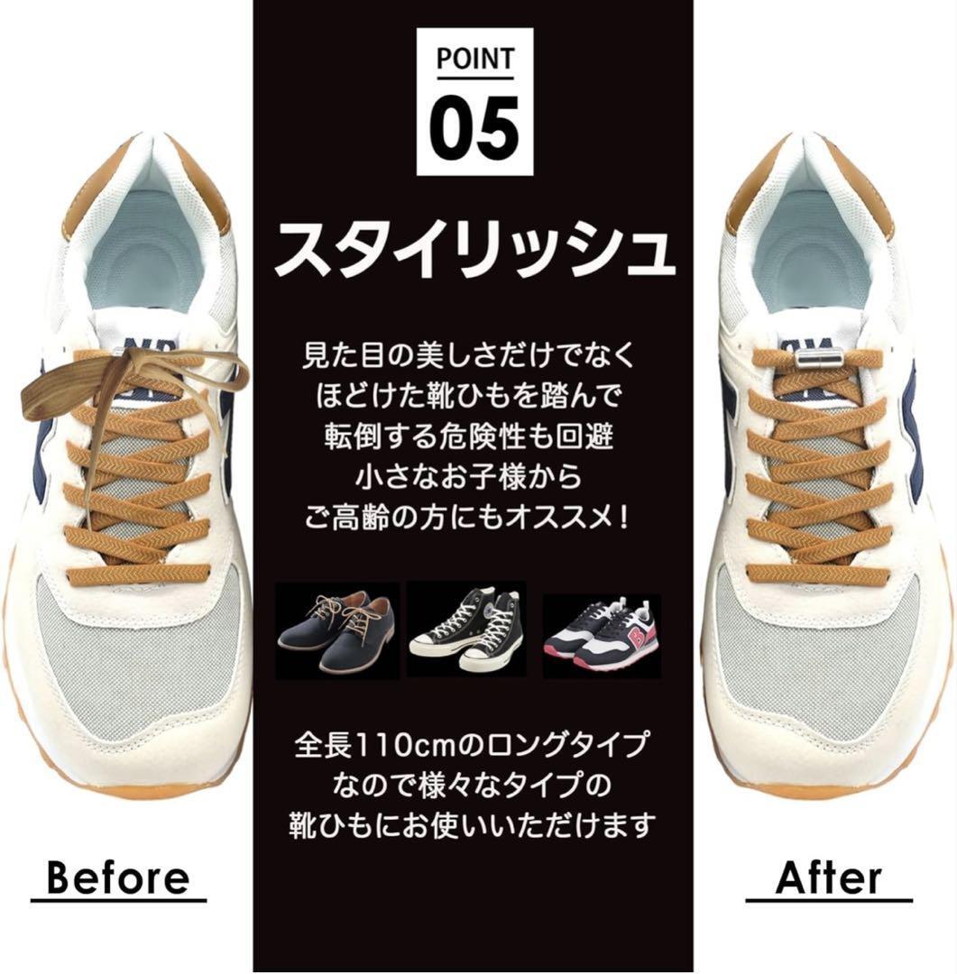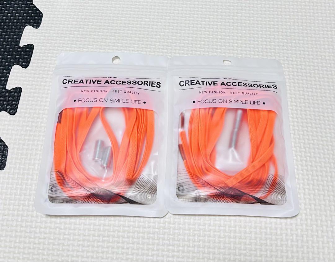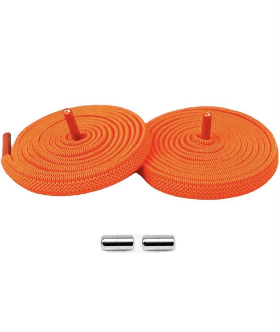 結ばない靴紐 靴ひも オレンジ 2足分(4本)セット 伸びる シューレース 收藏