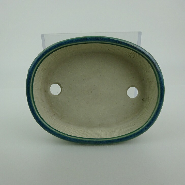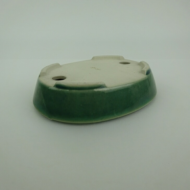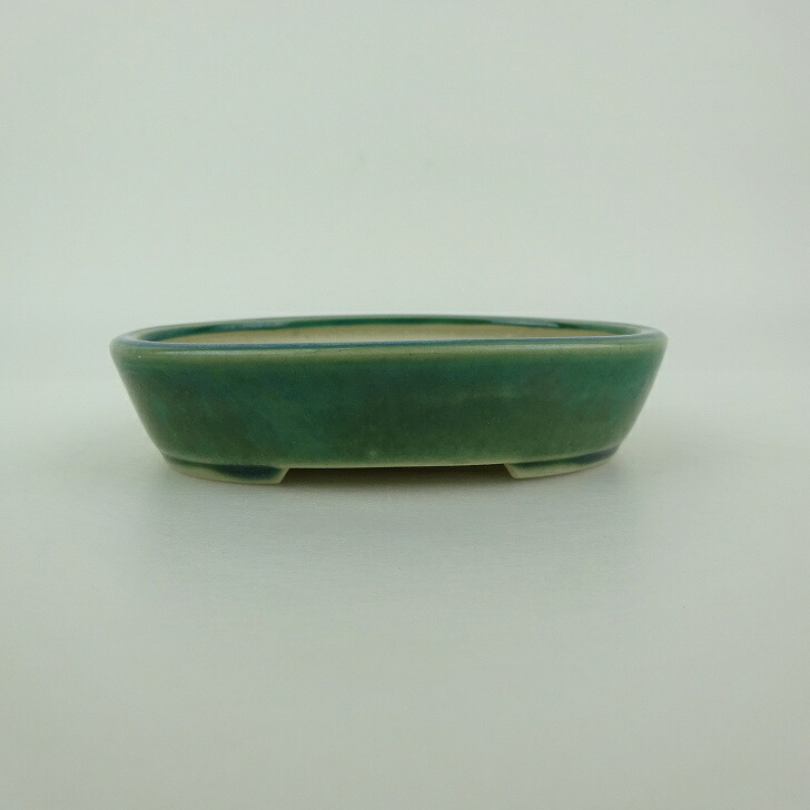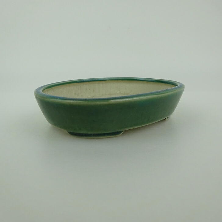 盆栽鉢 青香 小型 長辺 約10cm 楕円鉢 釉薬 現品 收藏