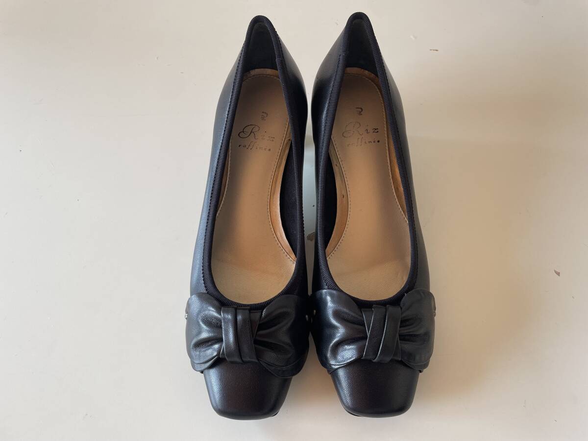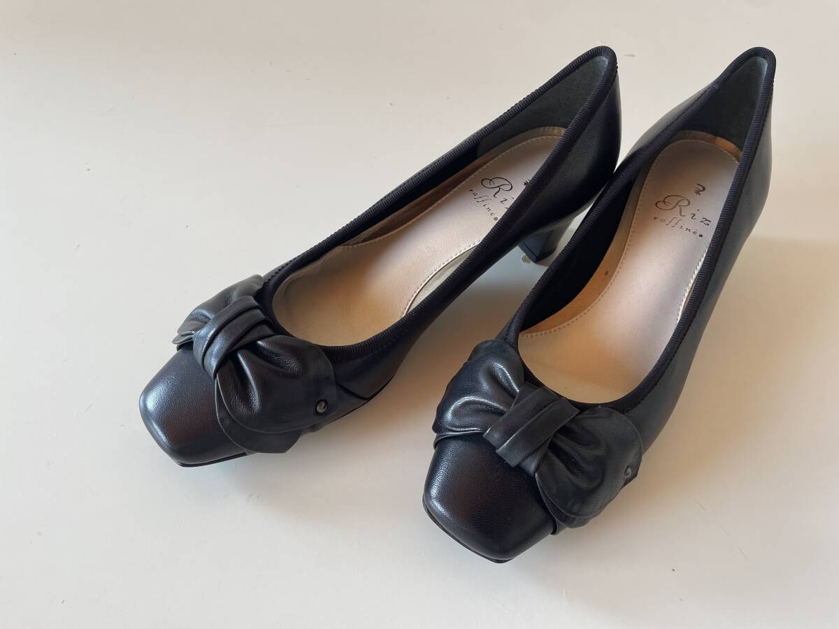 未使用新古品◎日本製 Riz raffinee リズ・ラフィーネ リボンつきパンプス 22EEE 黒 收藏