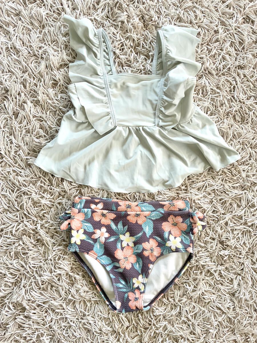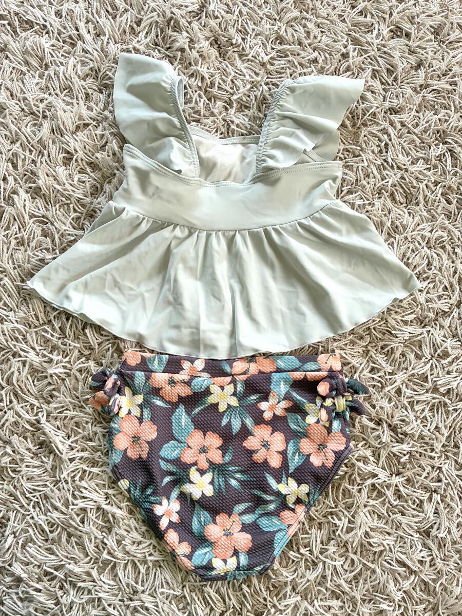 petit main プティマイン 130 水着 ハイビスカス グリーン ビキニ プール タンキニ セットアップ 花柄 フリル 收藏