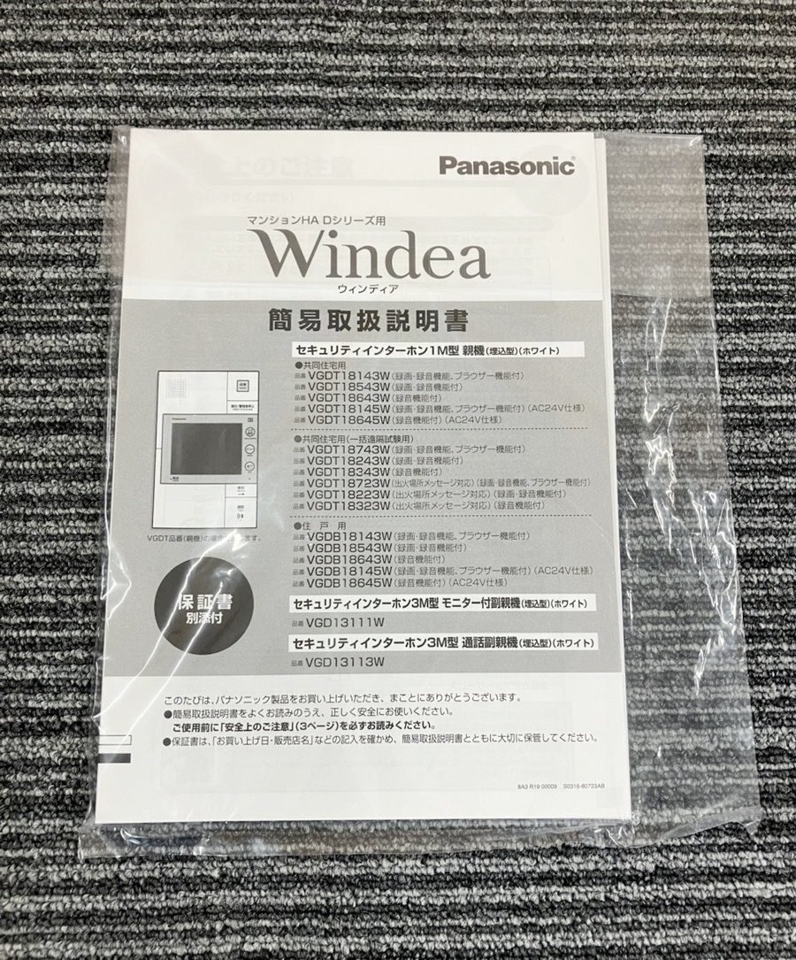 【未使用】パナソニック ウィンディア 住戸用セキュリティインターホン1M型親機 VGDB 18543W 埋込型 ホワイト IK0911ー7xxx4 收藏