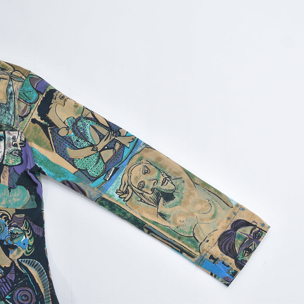 90s~ MIRROR IMAGE キュビズム ピカソ風 アートフル デザイン 総柄 コットン ジャケット コンチョボタン ブル 收藏