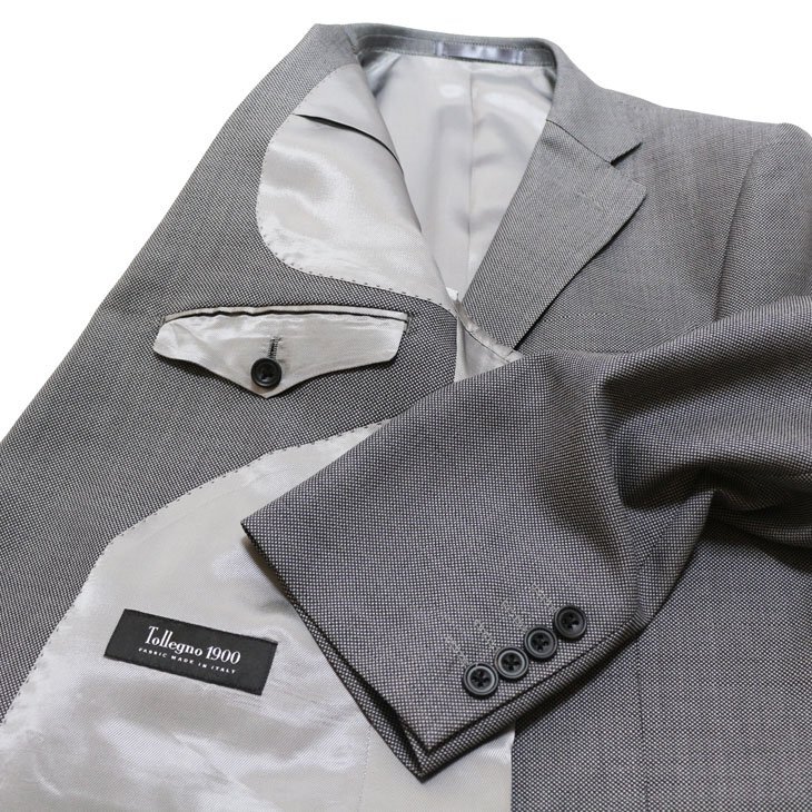 2025-26 新作 秋冬 Tollegno トレーニョ 国内オーダー工場生産 シルク混 淡灰グレー杢無地系 2つボタン スーツ ゆったり型 日本製 AB7 收藏