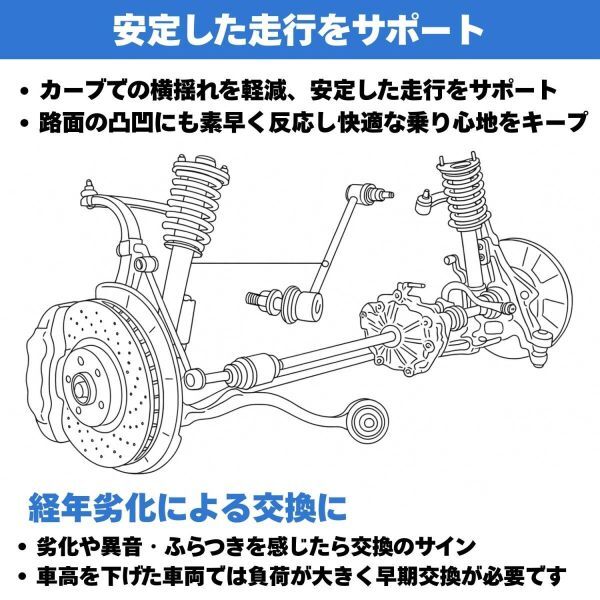 | 商品説明 | ■スタビライザーリンク 足回りのパーツは車体と車輪を連結している非常に重要なパーツです。 車の直進性や操舵性に大きく関わり、走行性能に影響を及ぼします。 ハンドルのブレやブレーキ時の違和感、ぐらつき、足回りからの異音を感じる場合は 交換の合図です。 事故防止のためにも早めの交換をおすすめします。 |