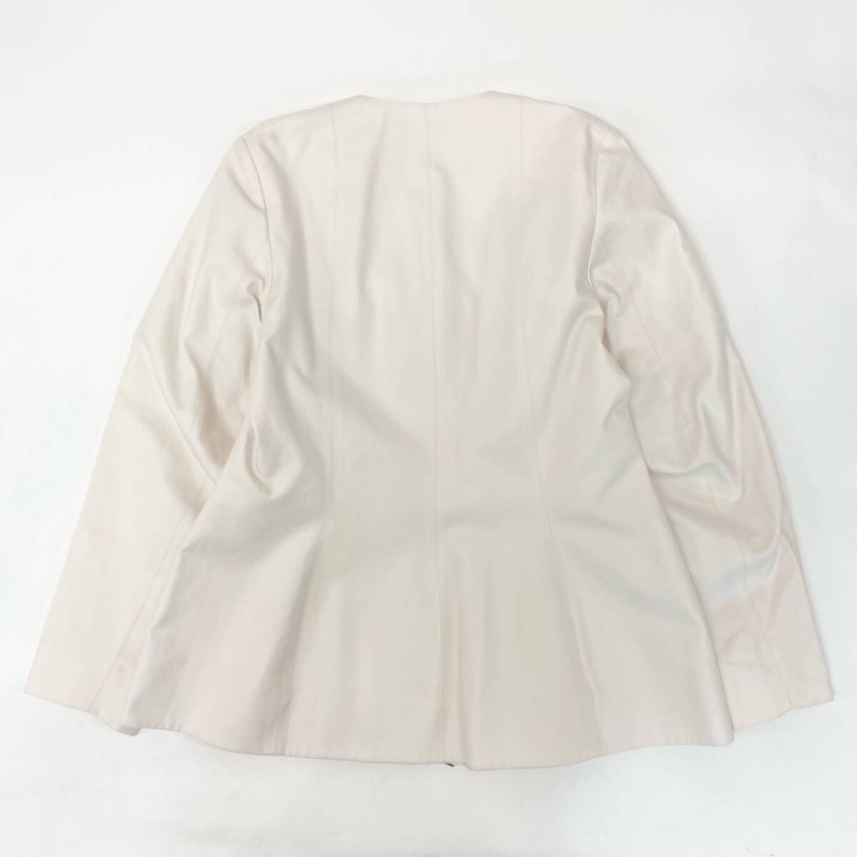 | AIによるサイズ診断 | 着丈69cm、肩幅40cm、身幅51cm、袖丈63cmのレディースノーカラージャケットです。 丈はヒップにかかる長さで、身長160〜168cm前後の方にバランス良く着用できます。 表記サイズ1は日本サイズでS〜M相当で、標準体型〜やや細身の方に適しています。 薄手インナーと合わせてすっきり着こなすのに適し、春秋の軽アウターとしても活躍します。 |