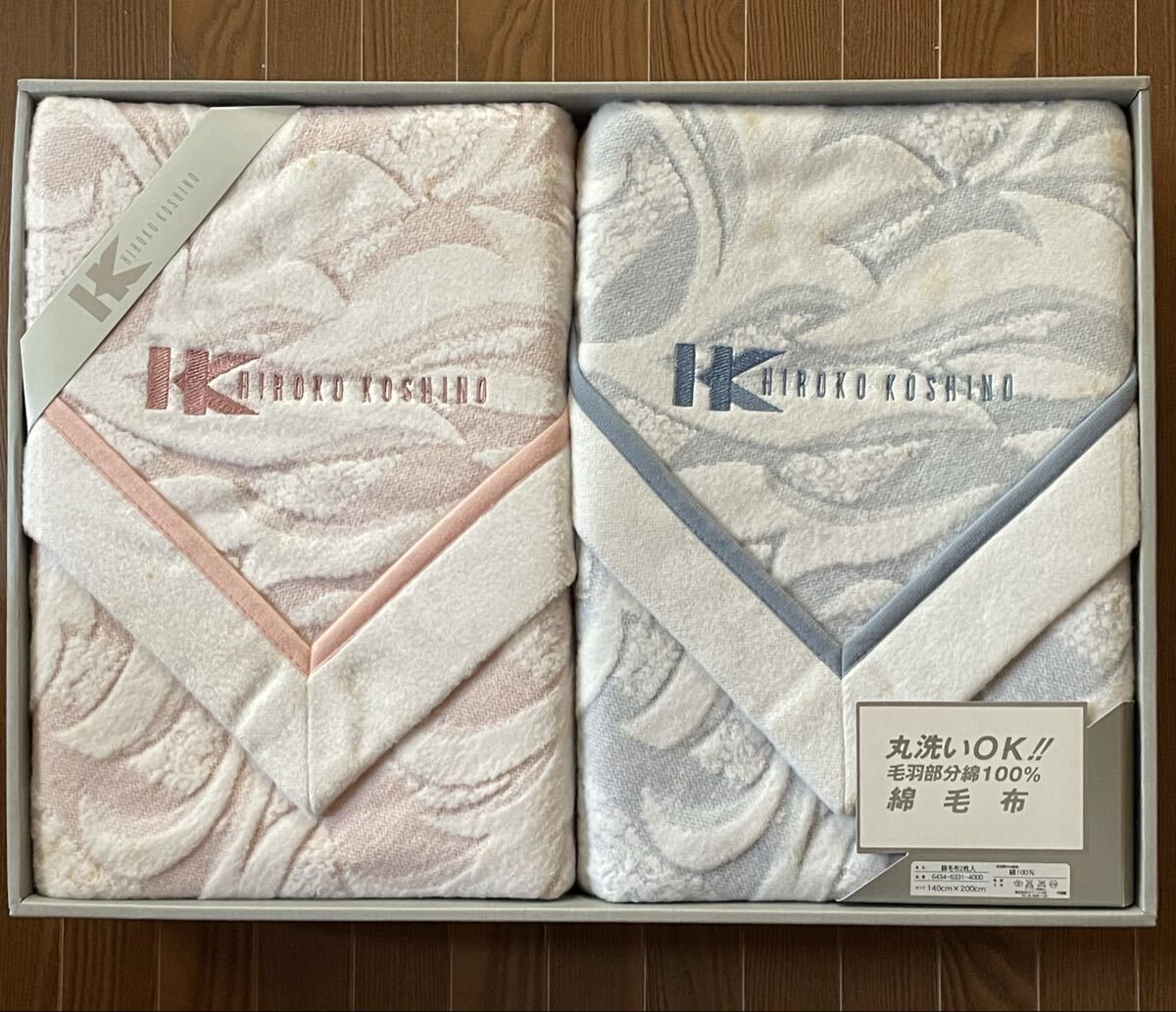 【新品・未使用少々難あり】HIROKO KOSHINO ヒロココシノ 綿毛布2枚入 丸洗いOK 綿100% 6434-6331-4000 140cmX200cm 收藏