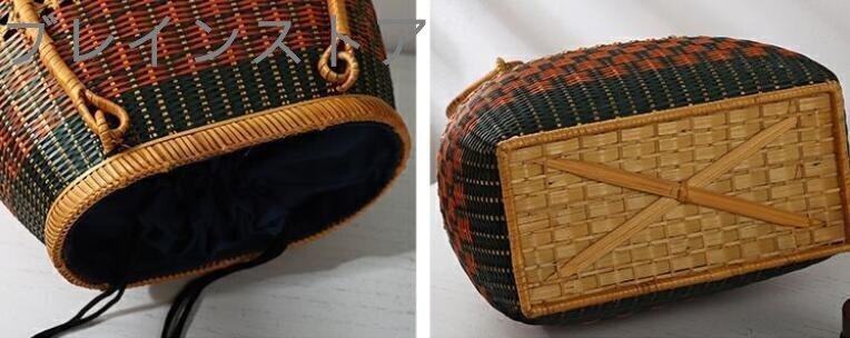 精編竹編み手編みハンドバッグ藤編みバッグレトロ風茶道手提げバッグ竹かごバッグ田園風精巧 收藏