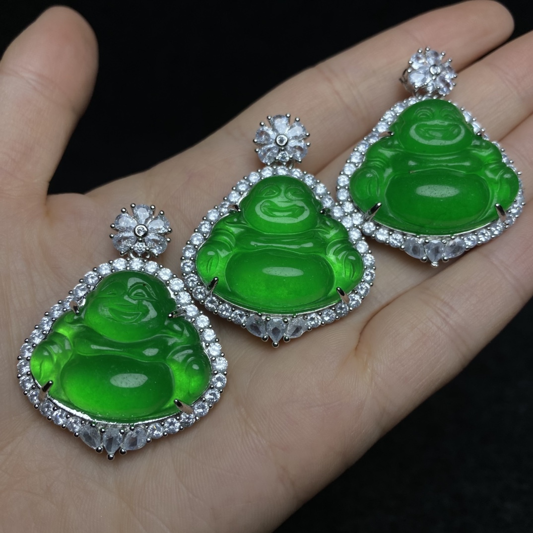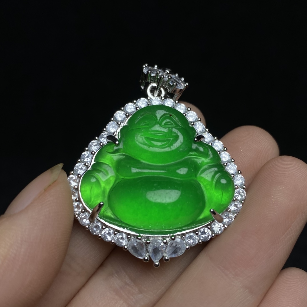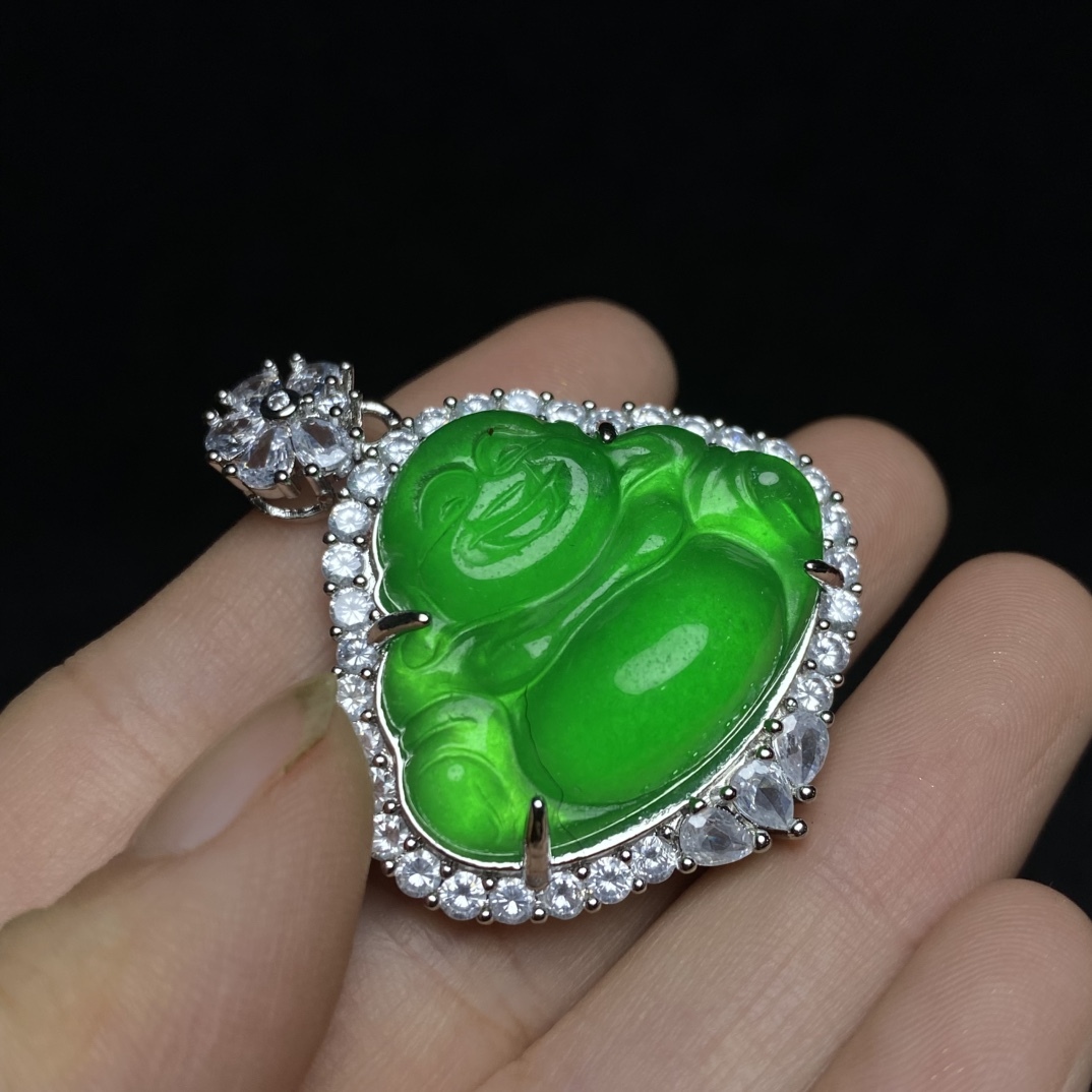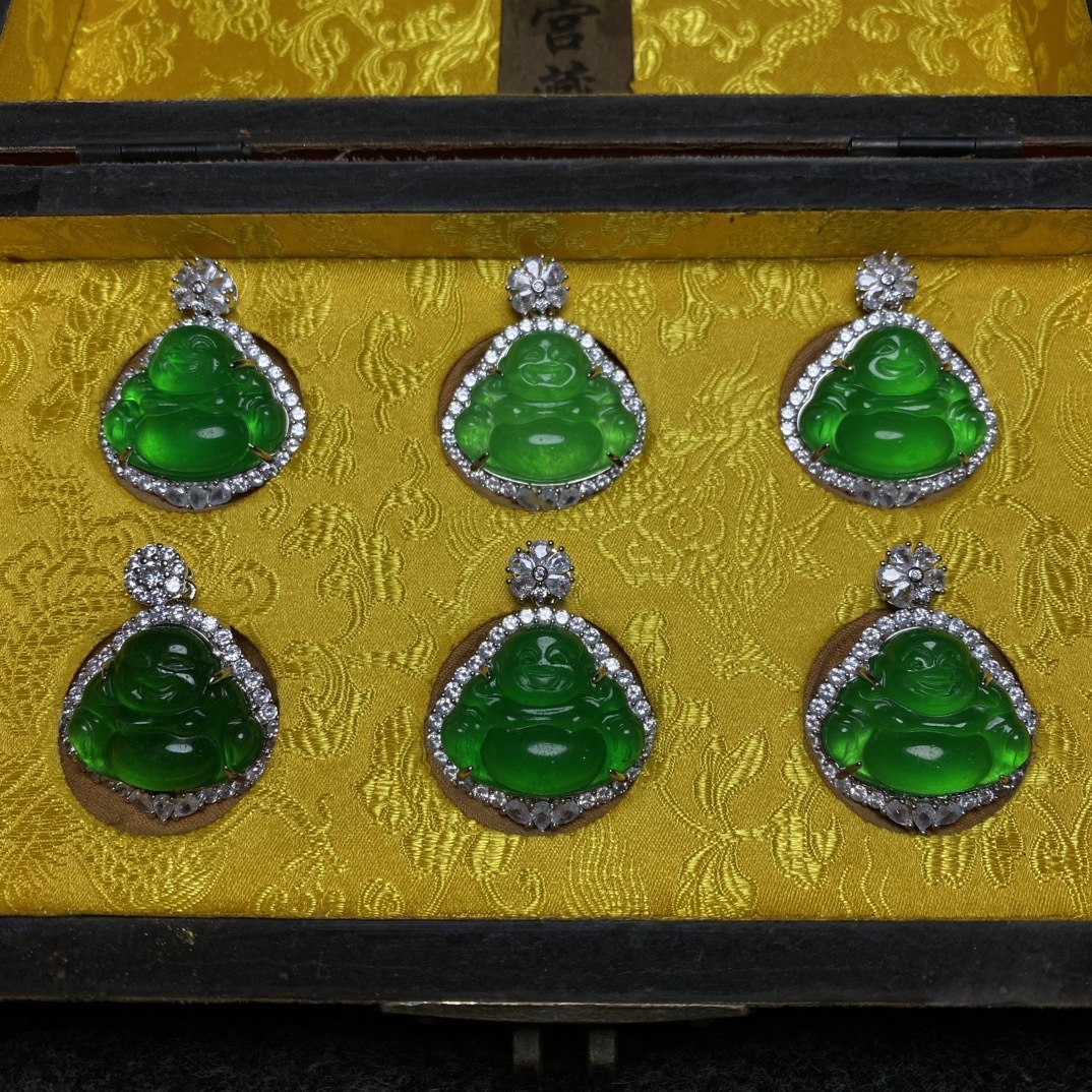 清代 宮廷御藏 高氷 翡翠 仏像 宝石彫 項鏈 首飾 共箱付き 置物 時代物 古董品 骨董 旧家蔵出し 唐物 中国古玩 古美術品XY9.24 收藏