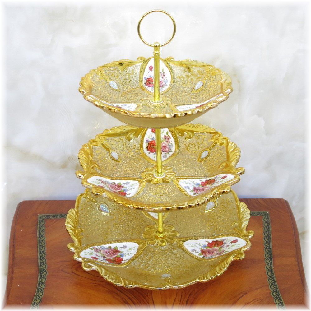 【送料無料!】★超激安即決!★新品 インテリア小物 アンティーク調 可愛い 3段プレート 置物 小物入れ 收藏