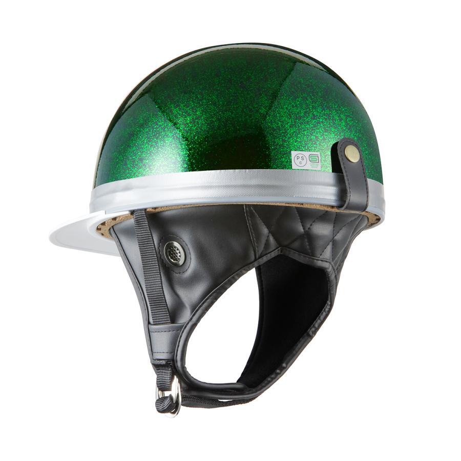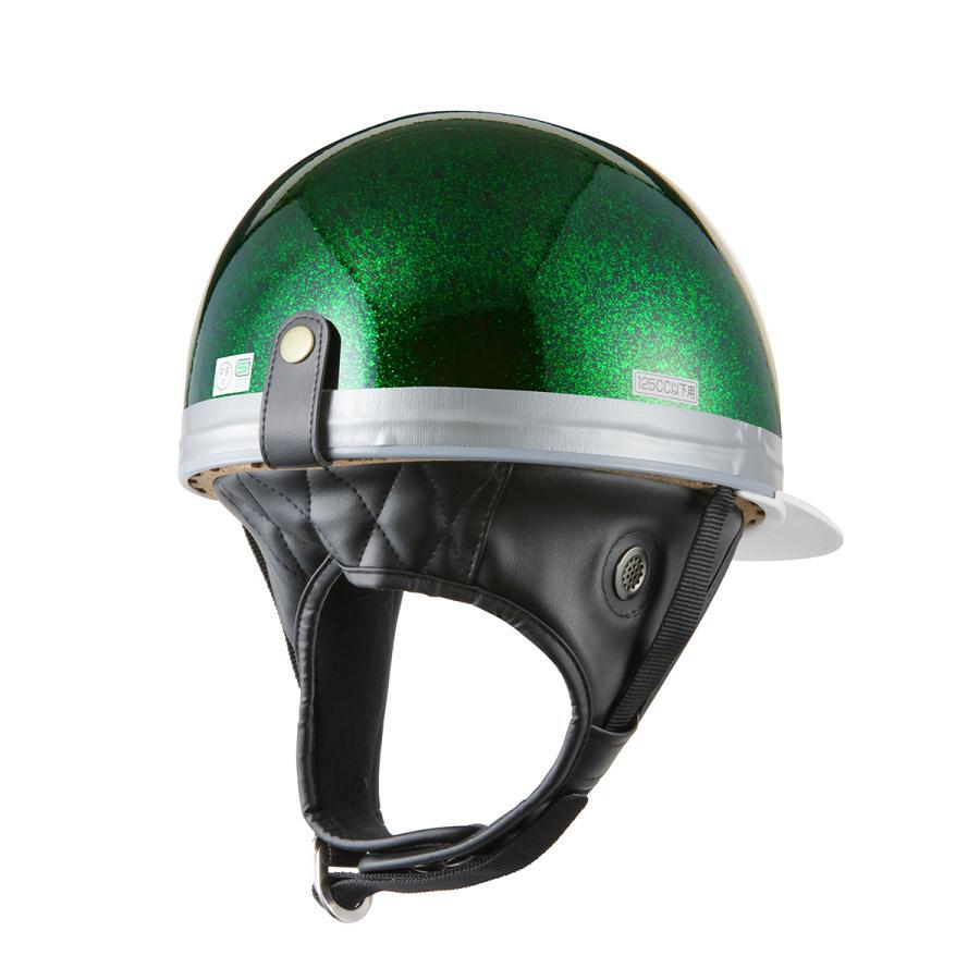 ヘルメット コルク半キャップ 三つボタン ブラックグリーンラメ KC-029LB 新品 57cm-60cm未満 バイクパーツセンター 收藏