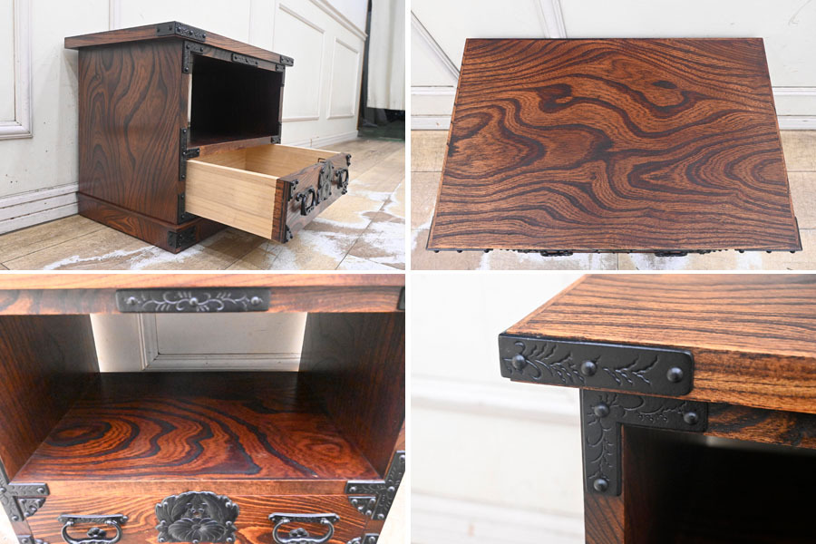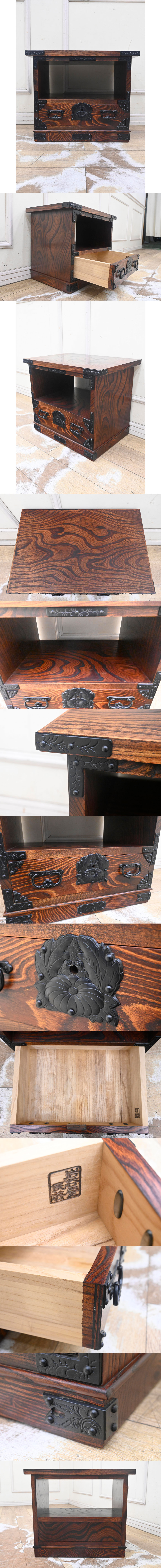 ----------------------------------------------------------------------------------------- ●送料や注意事項は必ずご確認下さい。落札後にトラブルになるケースが増えております。● ◆コンディションは写真・文章にて記載して有りますが、全てのキズの写真は掲載致しておりません。大きなダメージを除き見落とし、記載漏れが有る事はご了承下さい。 ◆当サイトにて出品する商品は多種多彩で、当方商品知識の無い物も多数ありますので落札後の質問やメンテナンス等にはお答えできません。 ◆入札された時点で、画像、文章をご理解していただいたものと判断させていただきます。不明な点は前もってQ&Aからお願い致します。入札後の質問やお電話等でのキャンセルは一切受け付け致しません。 ◆商品説明に「ノークレーム」と記載しているものに関しては、如何なる状況で届いても保証致しません。詳しくは注意事項の「商品到着後について」の最後に記載しておりますのでご確認下さい。 ---------------------------------------------------------------------------------------- 日本家具のトップメーカー、岩谷堂のキャビネットUSED品の出品です。 一級品の欅材を使用しているため、全体を覆う木目の流れは自然のみが表現できる最高級の芸術です。 作りに関しても竹釘を使うなど手抜きの無さは並の家具との違いを鮮明にしています。 サイズ 幅51 奥34.5 高42.5㎝ 【コンディション】 鍵無し、本体色焼け、色抜け箇所、その他多少小キズ、薄汚れ等ありますが、中古品としては状態良好です。 | ||