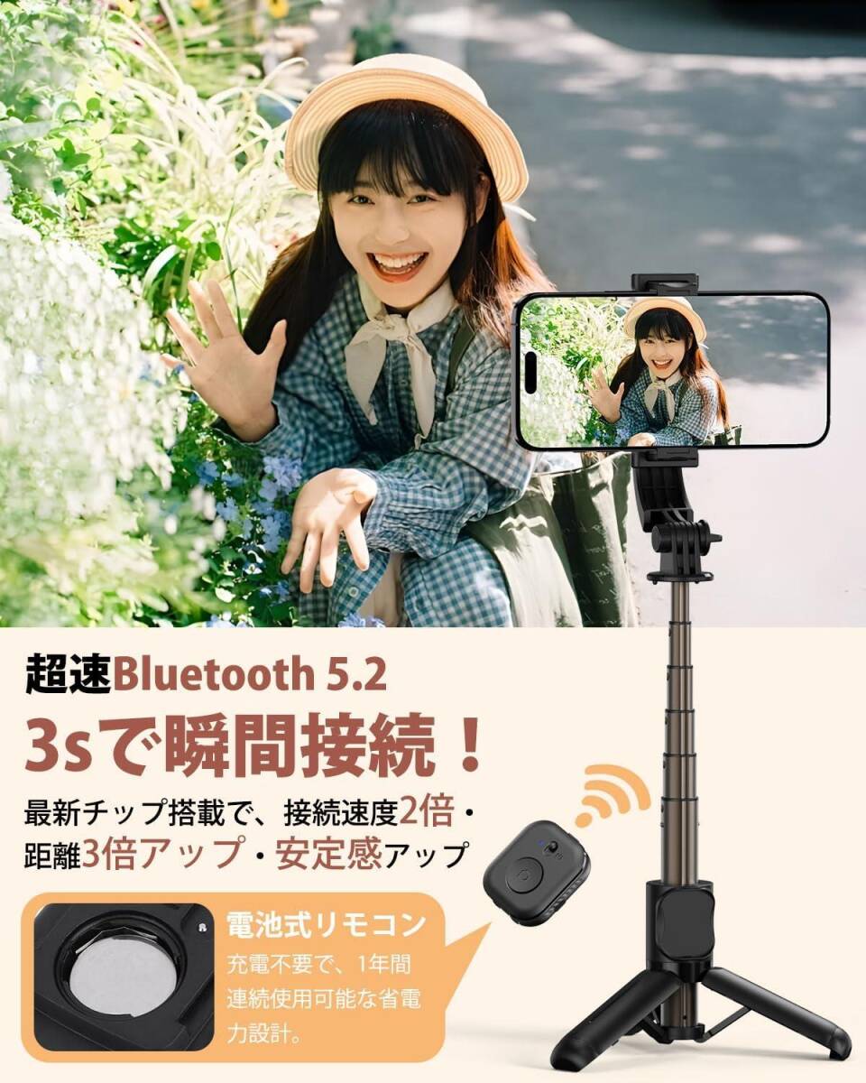 | 機能 | 自撮り棒・カメラ用三脚・ビデオスタンド |