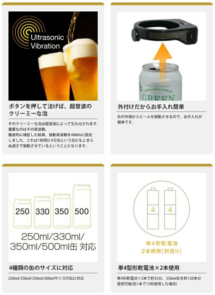 【送料無料】〇ワンタッチビールサーバー 超音波式 クリーミー泡 家庭用 缶ビール対応 外付け アウトドア 電池式(新品・未使用) 收藏