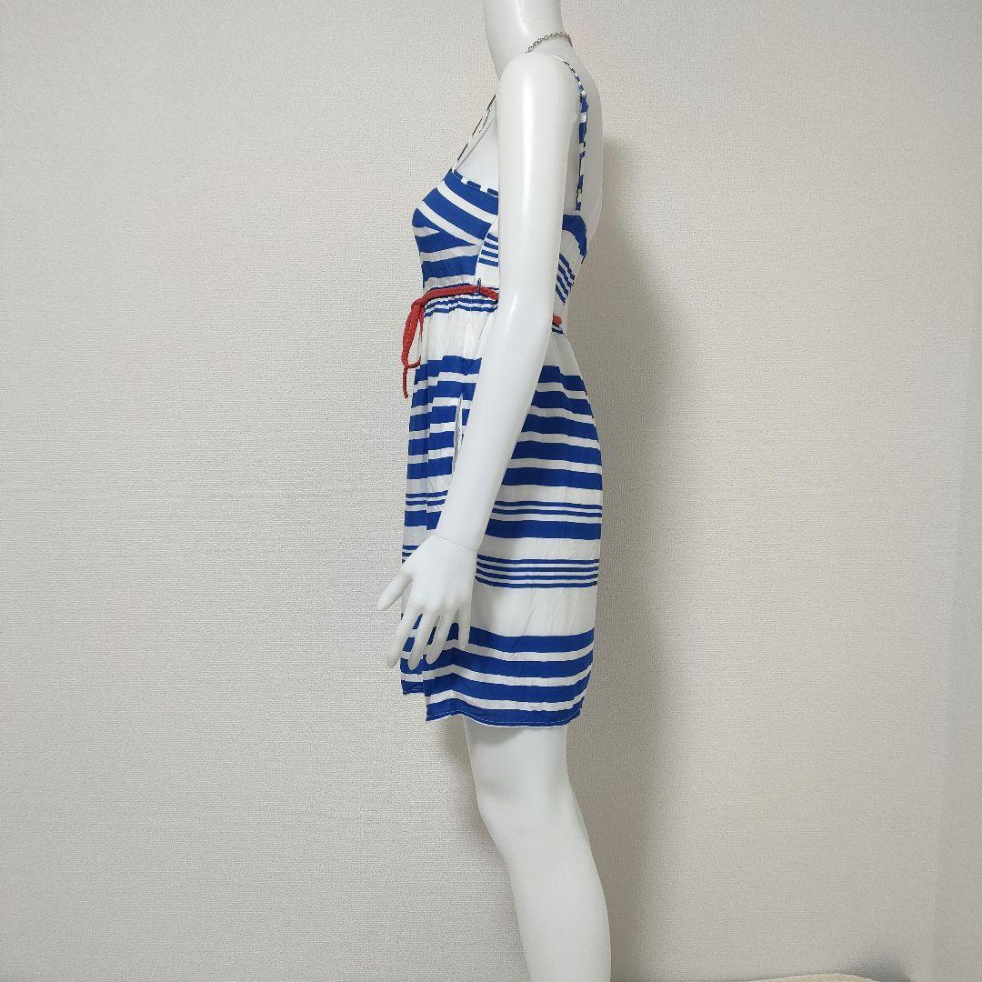 Zara TRF ザラ トラファ ロープベルト付きボーダーキャミワンピース マリンカジュアル S(日本M相当) ブルー 薄手 ハイウエスト切替 收藏