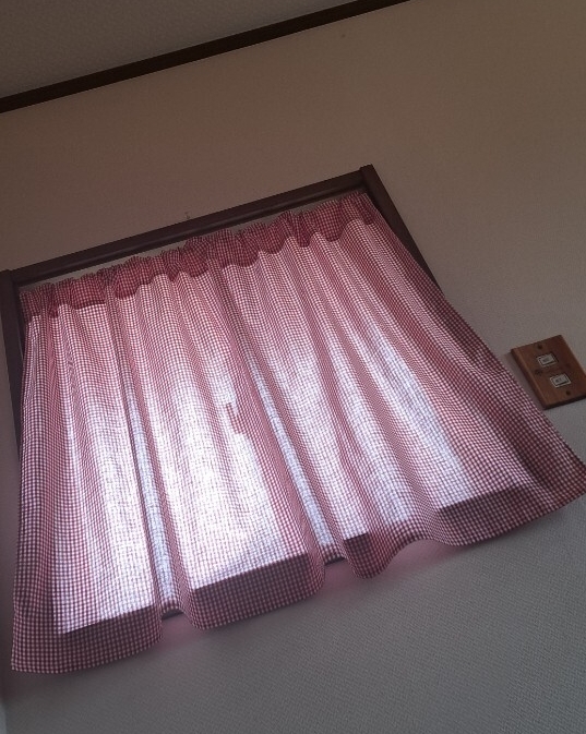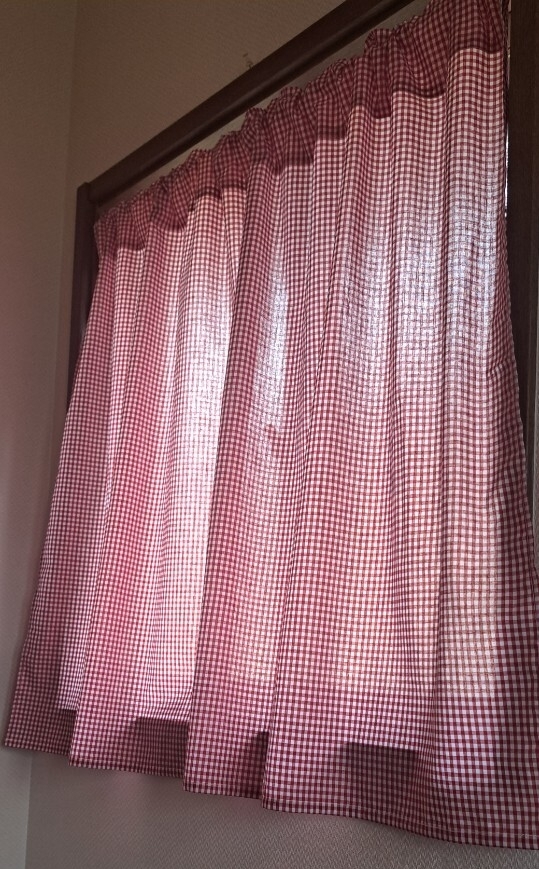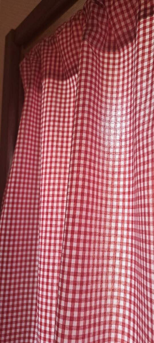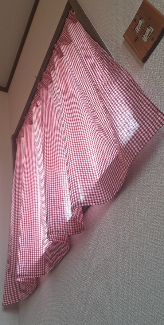 《 送料込み 》カフェカーテン*ハンドメイド*赤*ギンガムチェック*子ども部屋*小窓用*模様がえ 收藏
