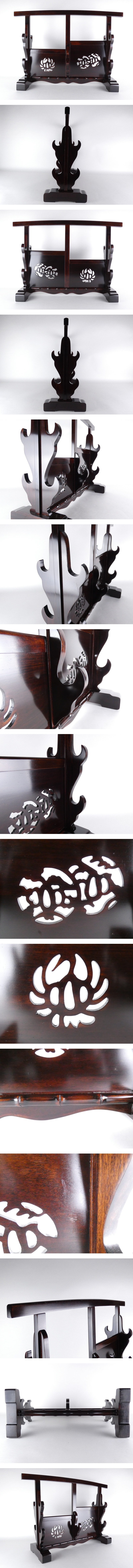 【都屋】唐木透かし彫り 刀掛け③ 高さ 約42cm 幅 約60cm 刀装具1026 K37 收藏