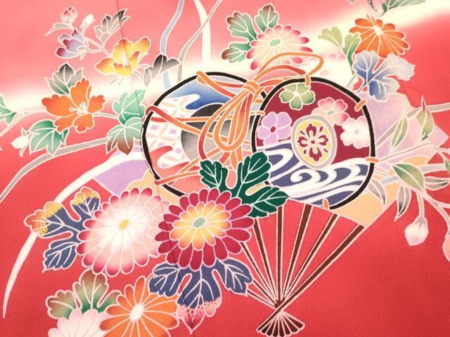 平和屋着物[]お宮参り 女の子 祝着 産着 初着 のしめ 扇面御所車鼓花文 暈し染め 逸品 未使用 DAAW2859ma 收藏