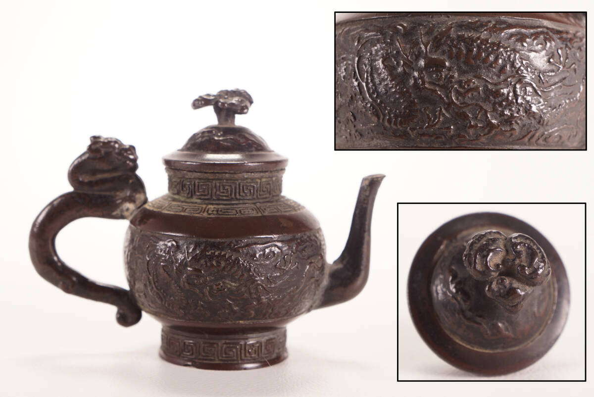 【asiya316】時代 古銅 龍紋 霊芝摘 水滴◆書道具 蔵出し 古美術 即決 送料無料 收藏