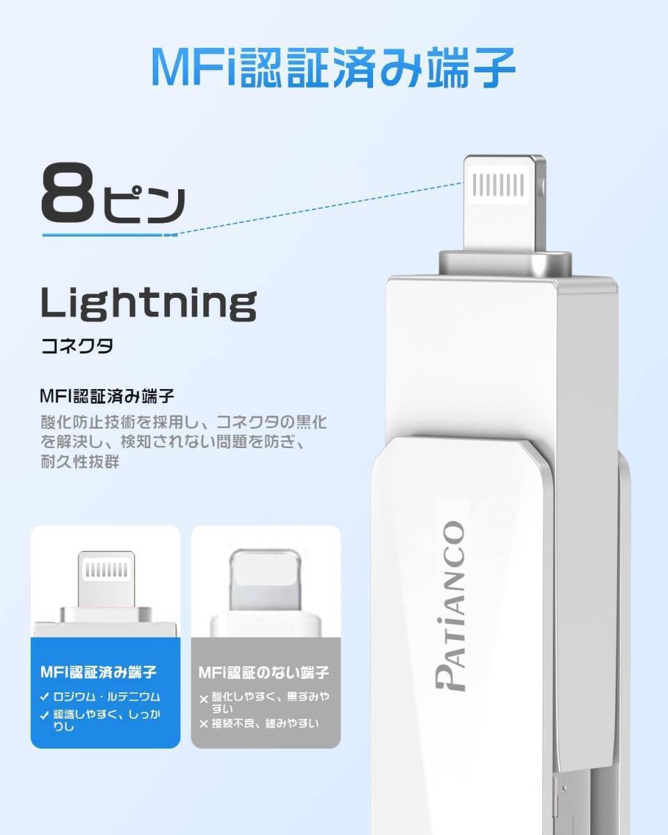128GB Patianco【MFi認証品 セキュリティ機能付】iPhone用 USBメモリ 收藏