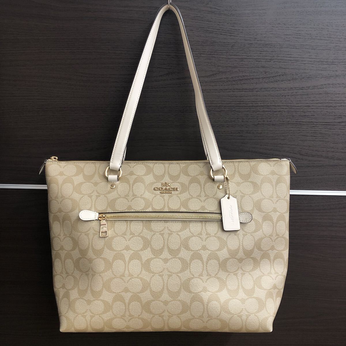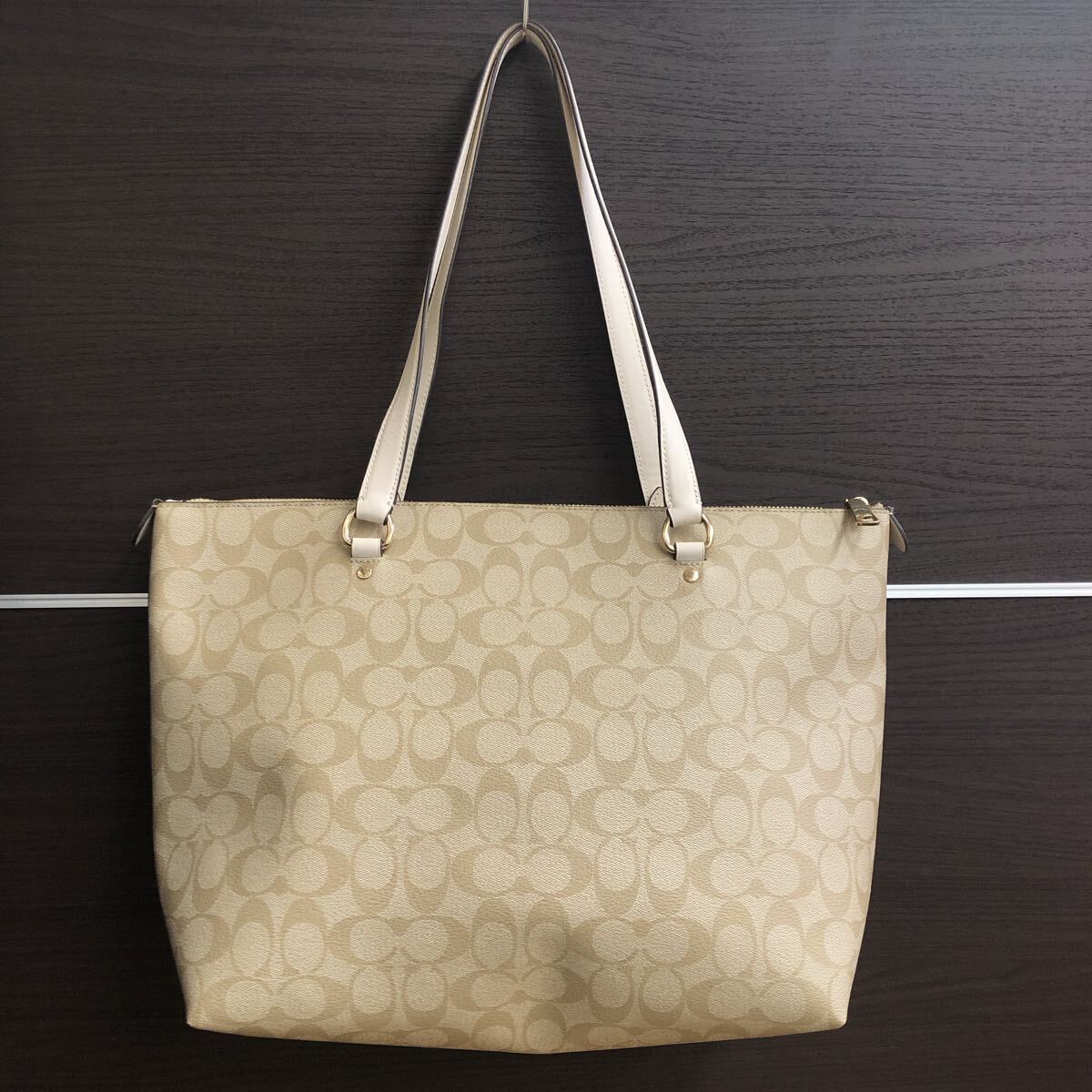 【051】 COACH コーチ F79609 シグネチャー PVC×レザー トートバッグ ショルダー 肩掛けかばん レディース ベージュ×ホワイト 收藏