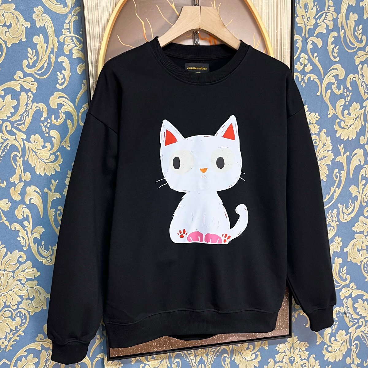 定価4万★christian milada・ミラノ発・トレーナー★コットン100% ソフト 保温 ネコ 可愛い シンプル トップス スウェット カジュアル 2XL 收藏