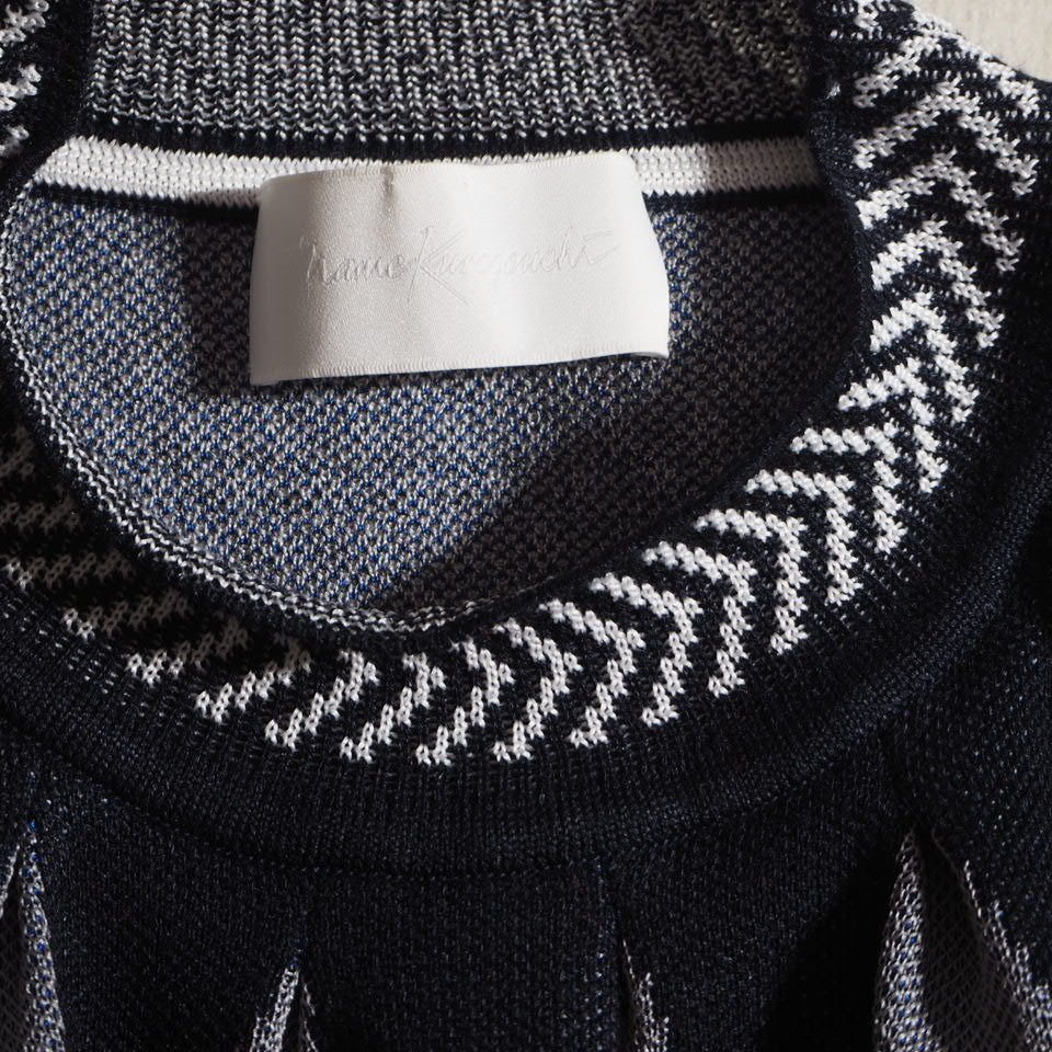 P7092f19 ▼Mame Kurogouchi マメクロゴウチ▼ Layered Collage Knit Peplum One-Piece ポリエステル ニットワンピース ネイビー 2 秋~春 收藏