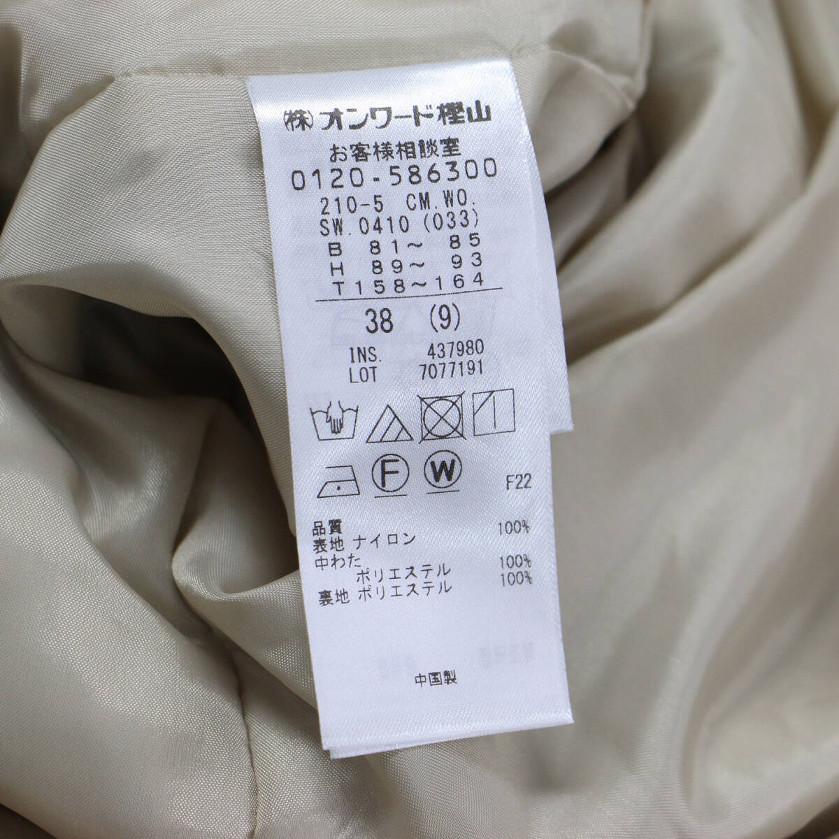 23区 ジャケット ベージュ系 サイズ:38(M) | 23秋冬 中綿 ロング パディング ジャケット | ノーカラー ロング丈 キルティング 撥水加工 收藏