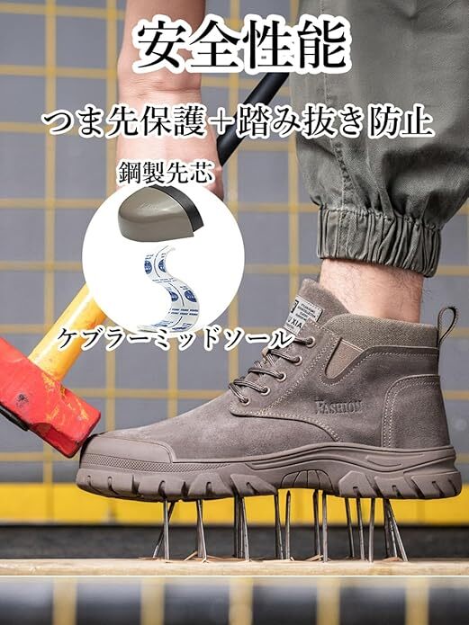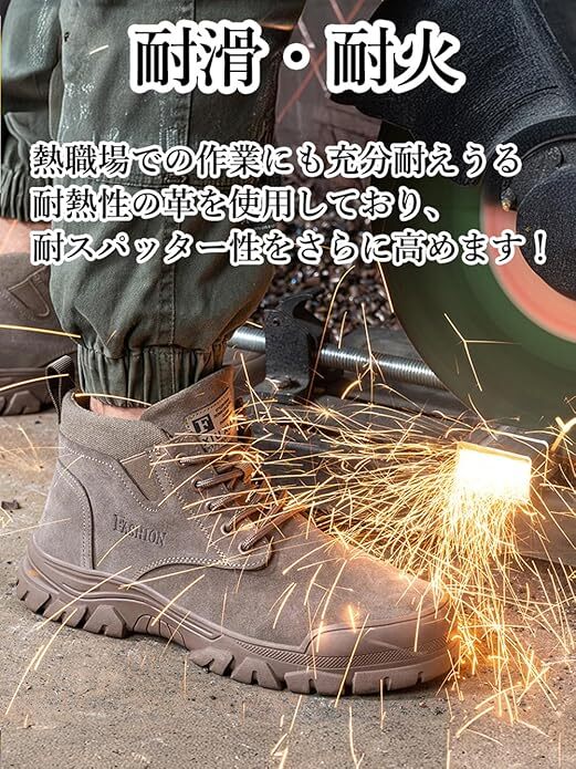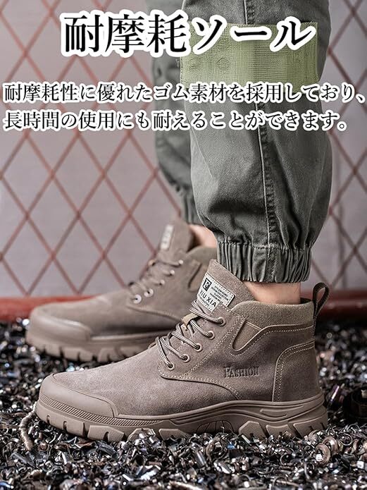 安全靴 ハイカット 防水 あんぜん靴 作業靴 ブーツタイプ 鋼鉄先芯 先芯入り 軽量 セーフティシューズ 通気性 カーキ サイズ:26.5cm 收藏