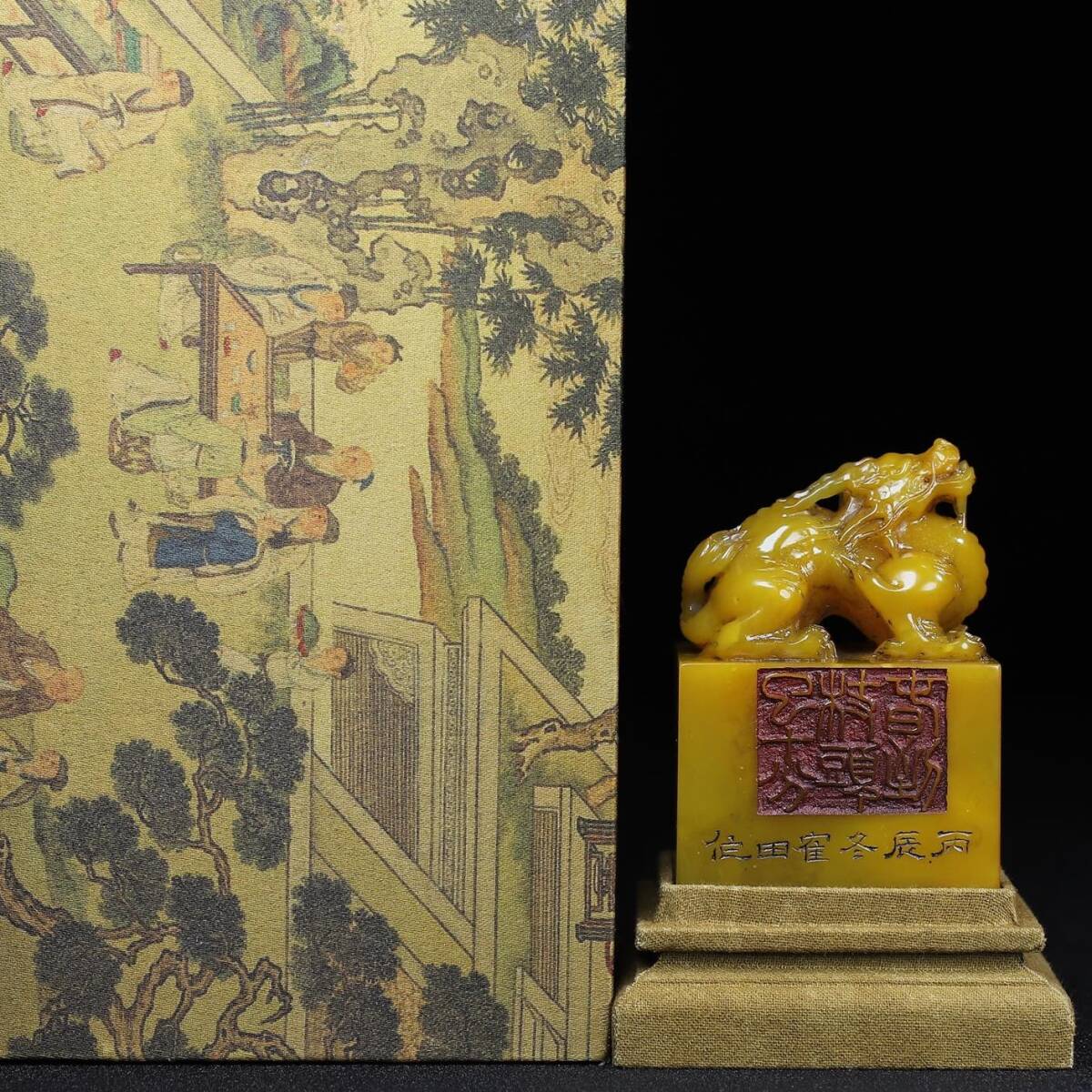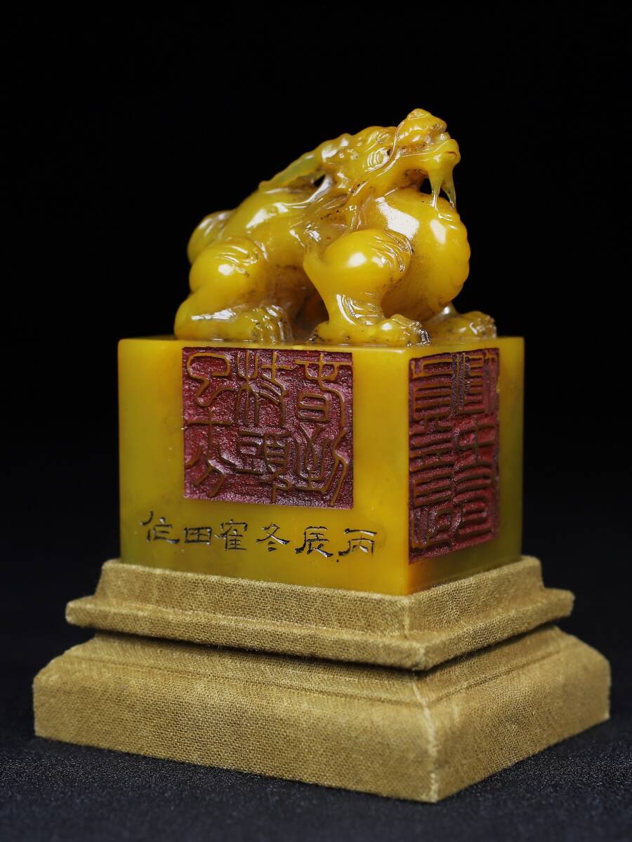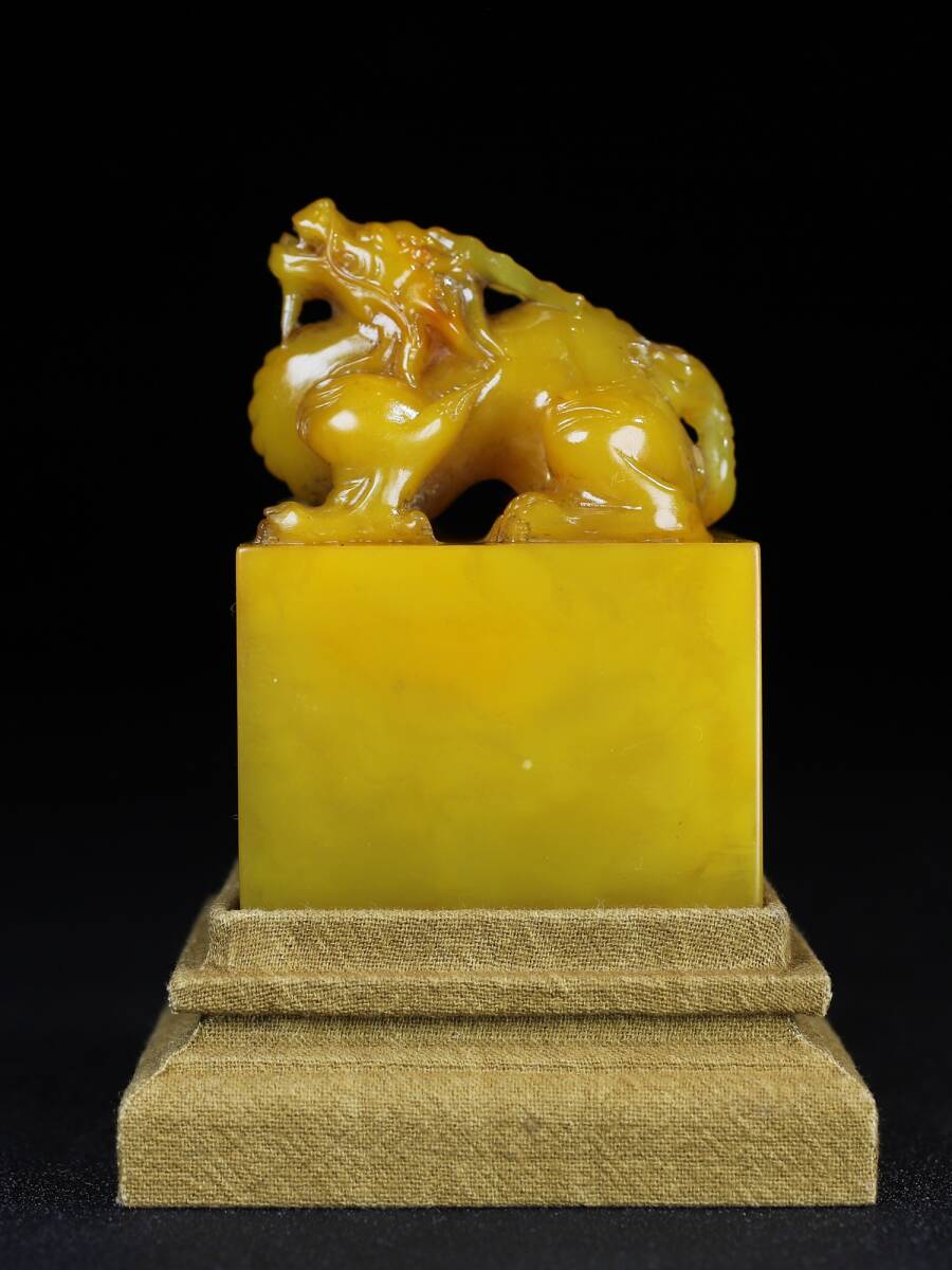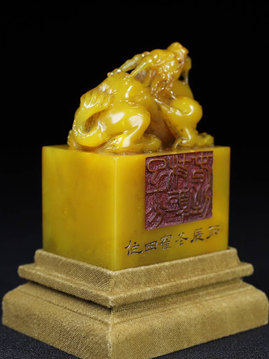 唐物 清時代 壽山石 『瑞獣呈祥』名人彫刻 田黄石彫 手彫り 共箱付き 印章 印鑑 印璽 極細工 置物擺件 古美術品 古董品 旧家蔵出 fx10.24 收藏