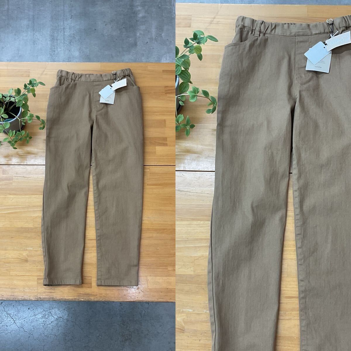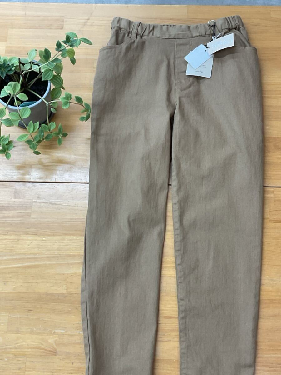新品タグ付 studio CLIP スタディオクリップ テーパードストレッチパンツ ウエスト紐ゴム ゆったり スリムボトムス ブラウン茶色系 S h 收藏