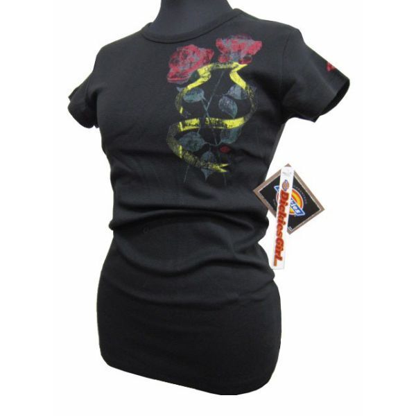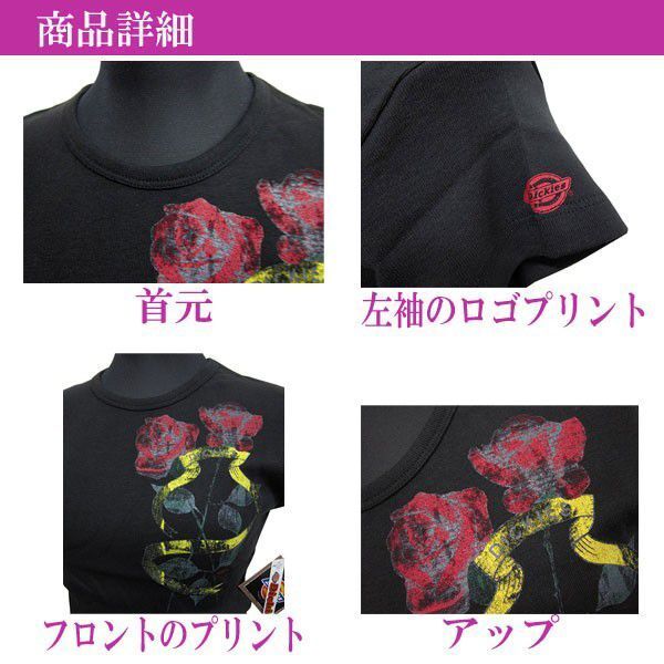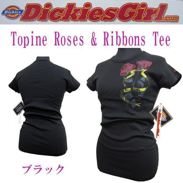 新品 ディッキーズガール ◆(S) DickiesGirl レディース 半袖Tシャツ ◆クロ Roses & Ribbons バラ 全国送料無料 收藏