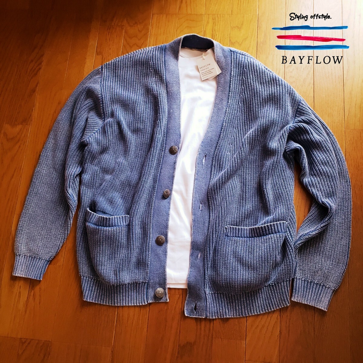 【新品】BAYFLOW Мサイズ フェードニット カーディガン ブルー ベイフロー インディゴ コンチョボタン 秋冬 收藏