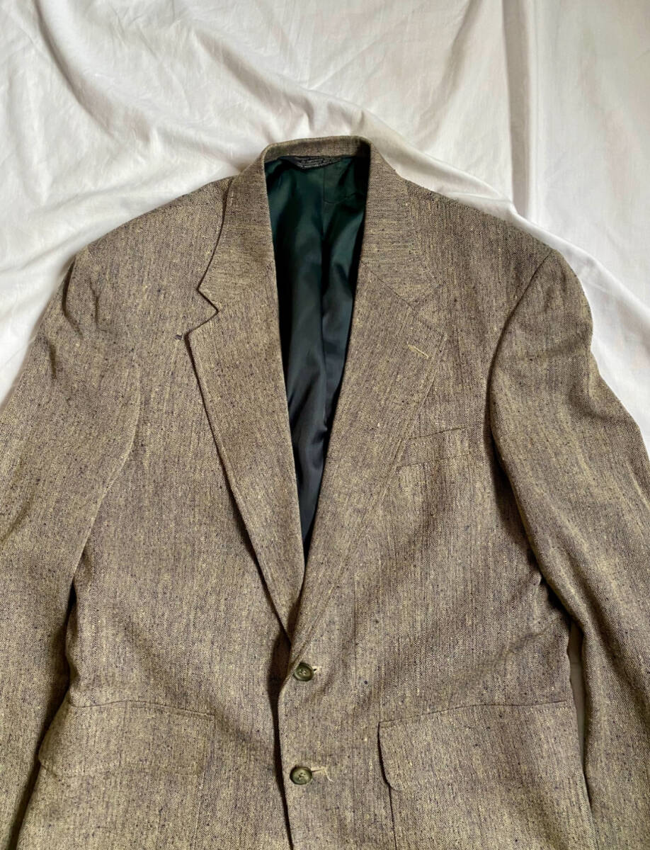 90s USA製 DEADSTOCK LANDS END ランズエンド レア品 シルク100% テーラードジャケット38R ビンテージ カスリ デッドストック 米国製 收藏