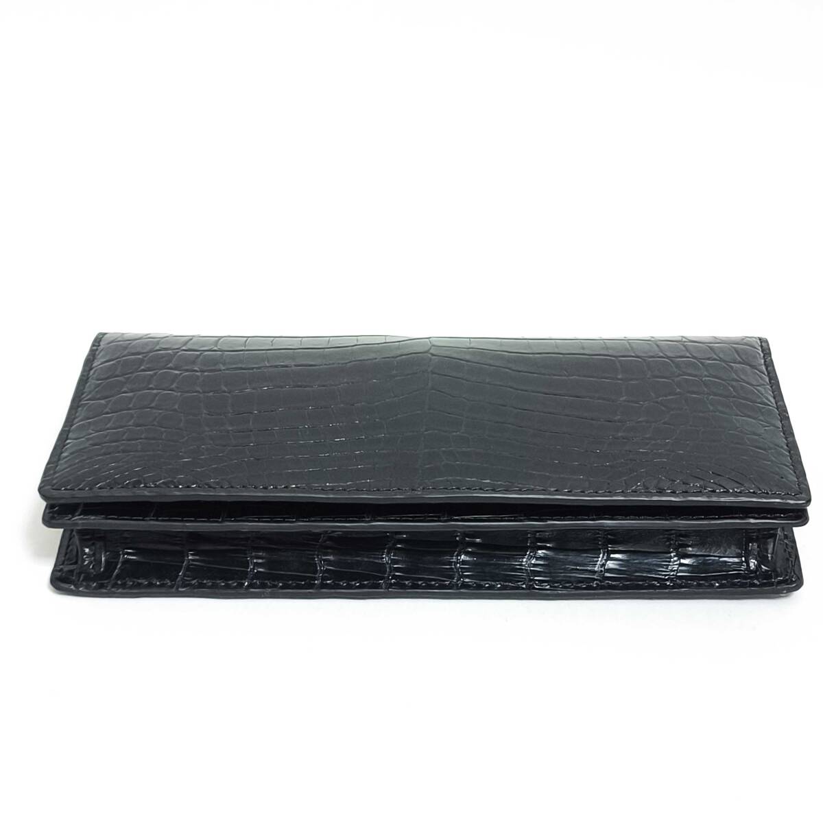 【未使用品・艶消】両面 クロコダイル(ワニ革)長財布 二つ折り 小銭入れ ブラック / 本革 / エキゾチックレザー 收藏