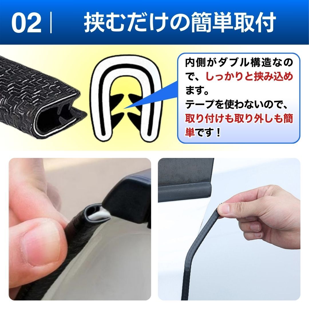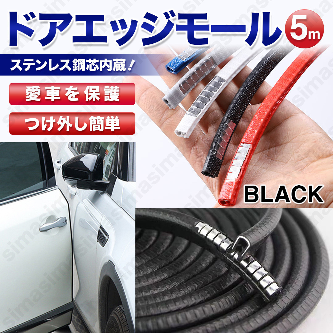 | ドアモール ドアガード ドアエッジ プロテクター U型 黒 5m 車 キズ 傷防止 保護 挟むだけ 簡単装着 防風 防音 防塵 自動車 ステンレス鋼芯 |
