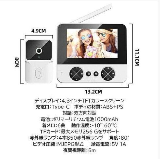 インターホン ワイヤレス 工事不要 800万画素 テレビドアホン 録画機能 カメラ付き インターフォン 玄関 チャイム 防犯対策 遠隔監視 收藏