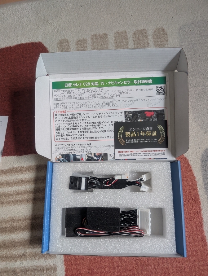 2025年8/20日に c28セレナのメーカーナビのTVキャンセラーを購入したのですが、同時にOttocastE2も購入し。当方ではOttocastがあれば良いことがわかり、TVキャンセラー ntv-05 エンラージ商事の最新版を出品します。写真用に開封したのみです。写真にあうものがすべてです。まがい品ではない証拠に購入納品書写真添付しました。おまけに取付時に必要なヘラをサービスします。神経質な方は入札ご遠慮ください。離島発送できません。送料込みの値段として出品します。