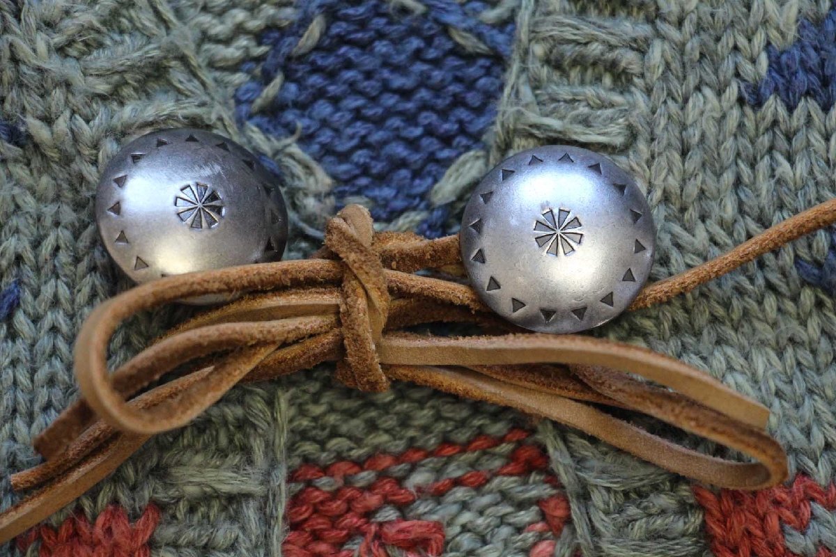 ★00s LAUREN ラルフローレン ネイティブ柄 コンチョボタン リネン×コットン ハンドニット カーディガン M★エスニック フォークロア 收藏