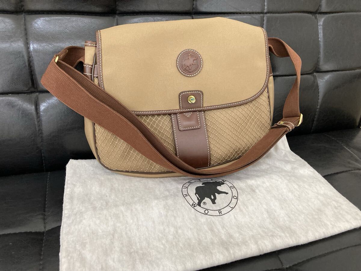 イ) ハンティングワールド ショルダーバッグ カーキ系 袋付き HUNTINGWORLD ファッション メンズ レディース 收藏