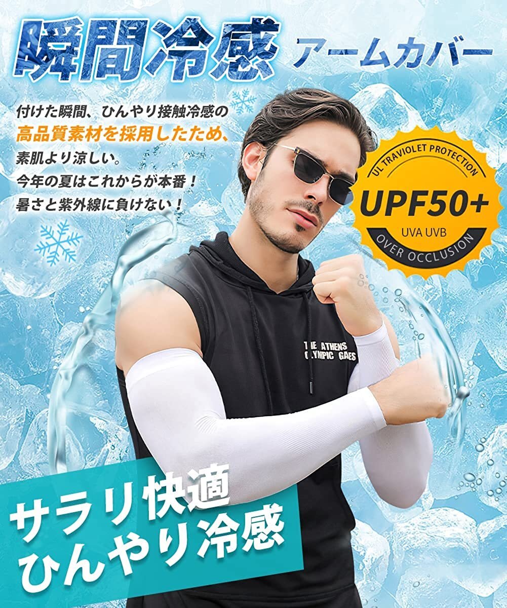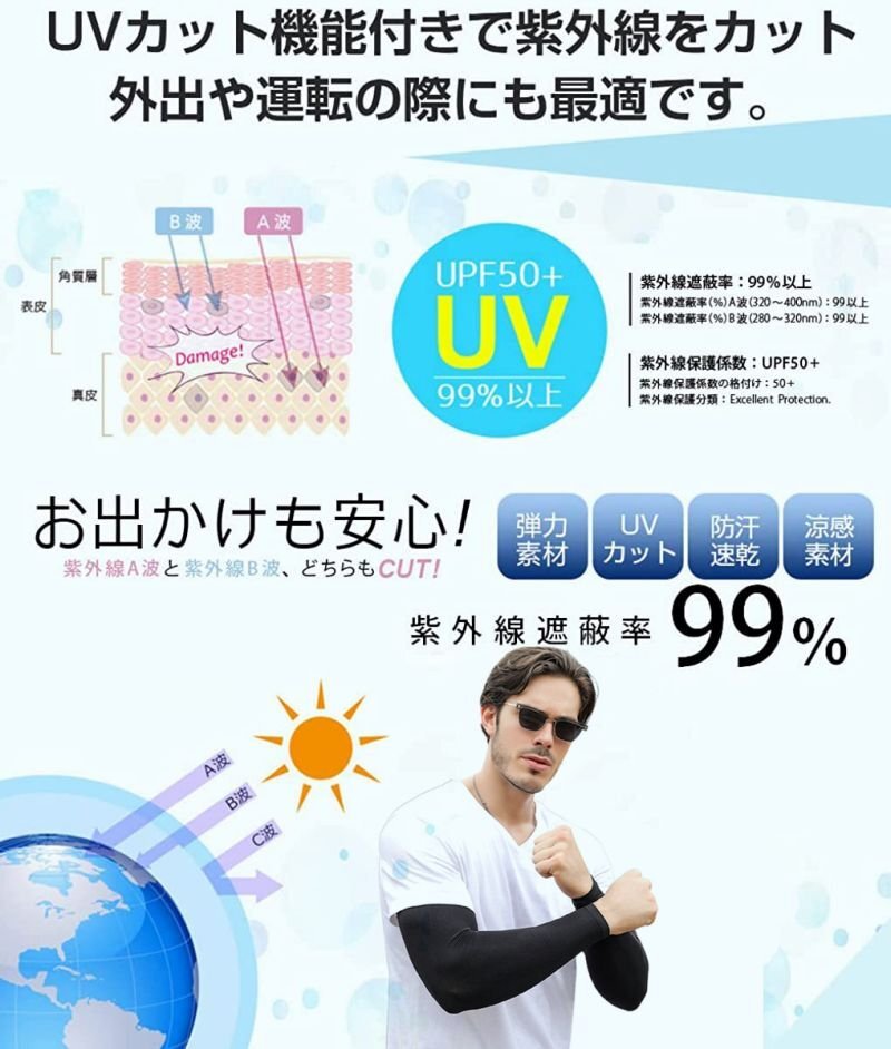 アームカバー UVカット 大きいサイズ 接触冷感 メンズ ロング スポーツ 日焼け対策 アウトドア 涼しい 運転 クール【指穴なしブラック】 收藏
