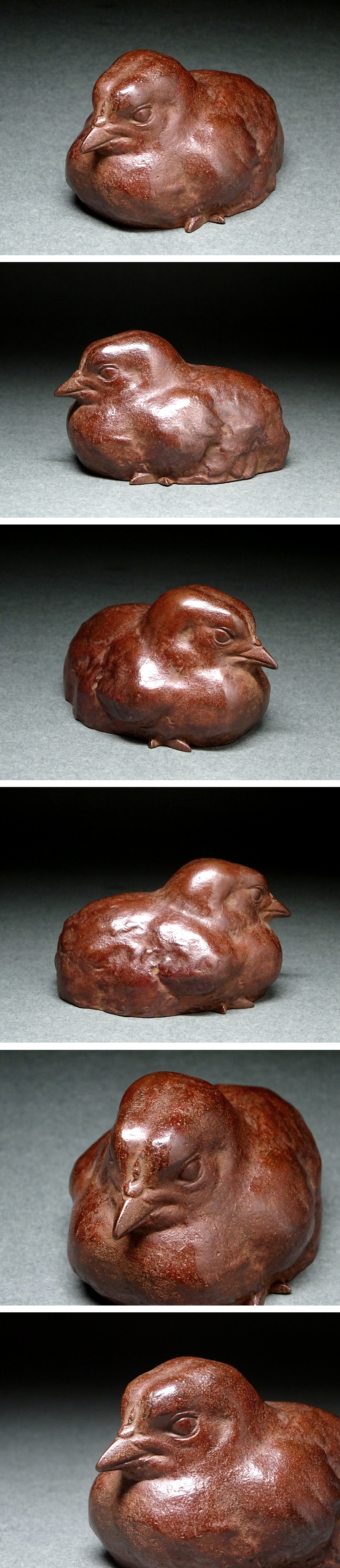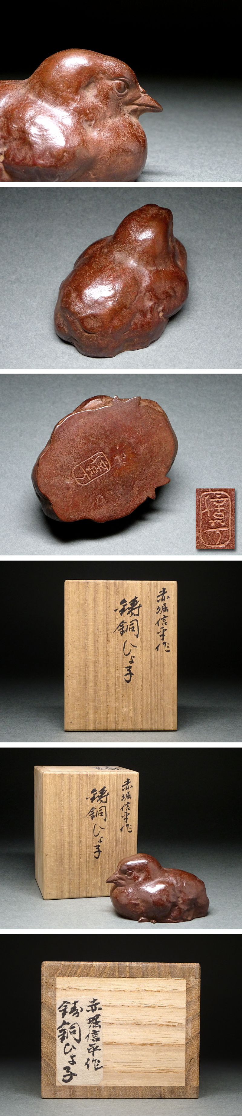 慶應◆人間国宝松田権六旧蔵【赤堀信平】作 鋳銅 ヒヨコ 雛置物 文鎮 旧蔵箱付 日展参与 師:朝倉文夫 收藏